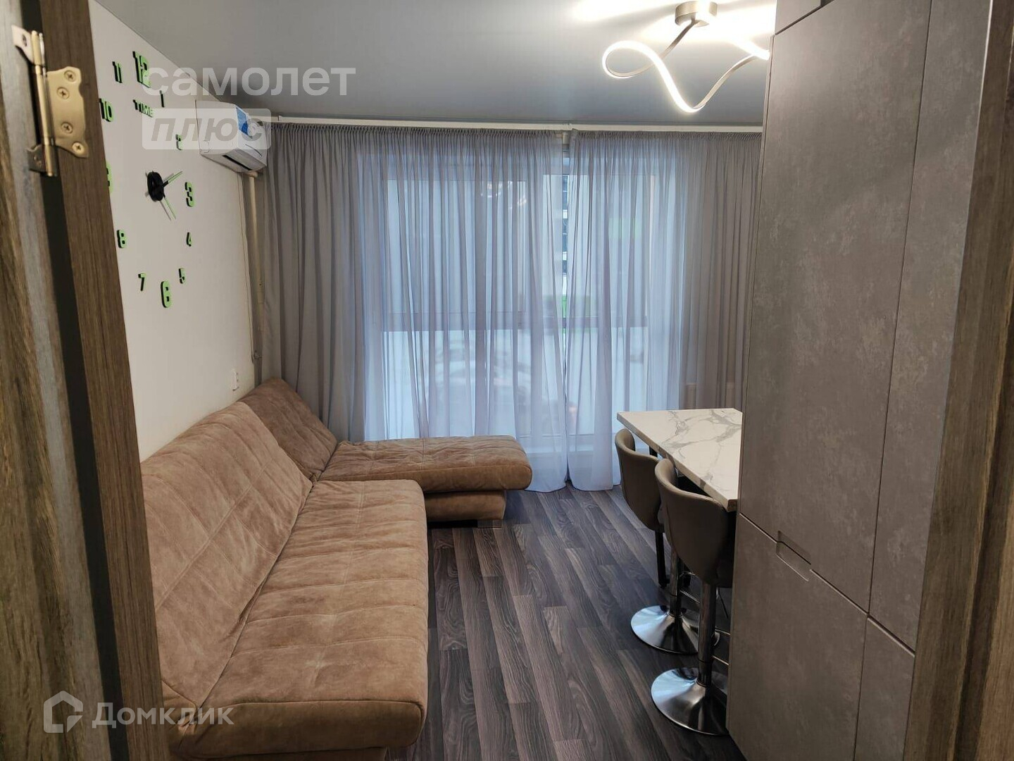 Представляю отличную, светлую и уютную квартиру- студию в ЖК Никс Лайн !  В квартире выполнен хороший и качественный ремонт, панорамное остекление большие окона в пол, за счет чего много света . +натяжные потолки +современные обои +на полу линолеум хорошего качества +межкомнатные двери +в коридоре установлен вместительный шкаф-купе. +в кухни-гостиной установлена прекрасная кухня дизайнерского проекта, в светлой тональности с столешницей мрамор. Барная стойка с высокими стульями, в современном стиле. Встраиваемая бытовая техника: +варочная панель на 4 камфорки; +холодильник +микроволновая печь +телевизор +кондиционер +встроенный шкаф для вещей в едином стиле с кухней +большой диван +освещение с диодными люстрами и тюль со шторами блэк-аут, так же остаются новым владельцам. +сан узел в современном стиле, закрытая сантехническая разводка, что придает эстетический вид ванной комнате. +установлена акриловая ванная с раздвижными ширмами. +инсталляция, качественного бренда. Тропический душ. +стиральная машина автомат,остается новым владельцам.