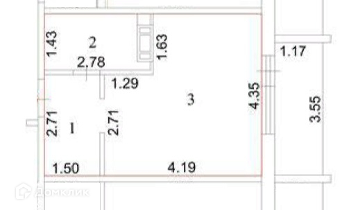 Общая площадь 23.7 м2