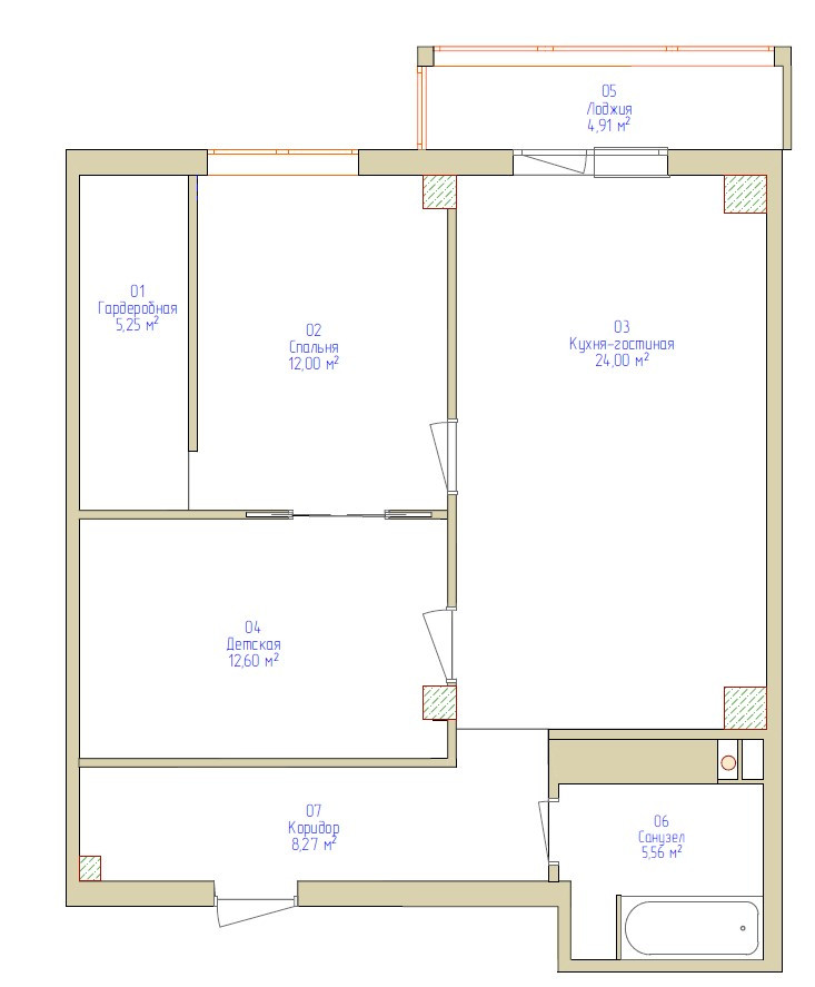 Коридор (с гардеробной) – 8,3м2