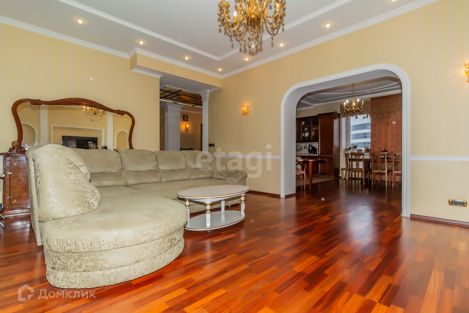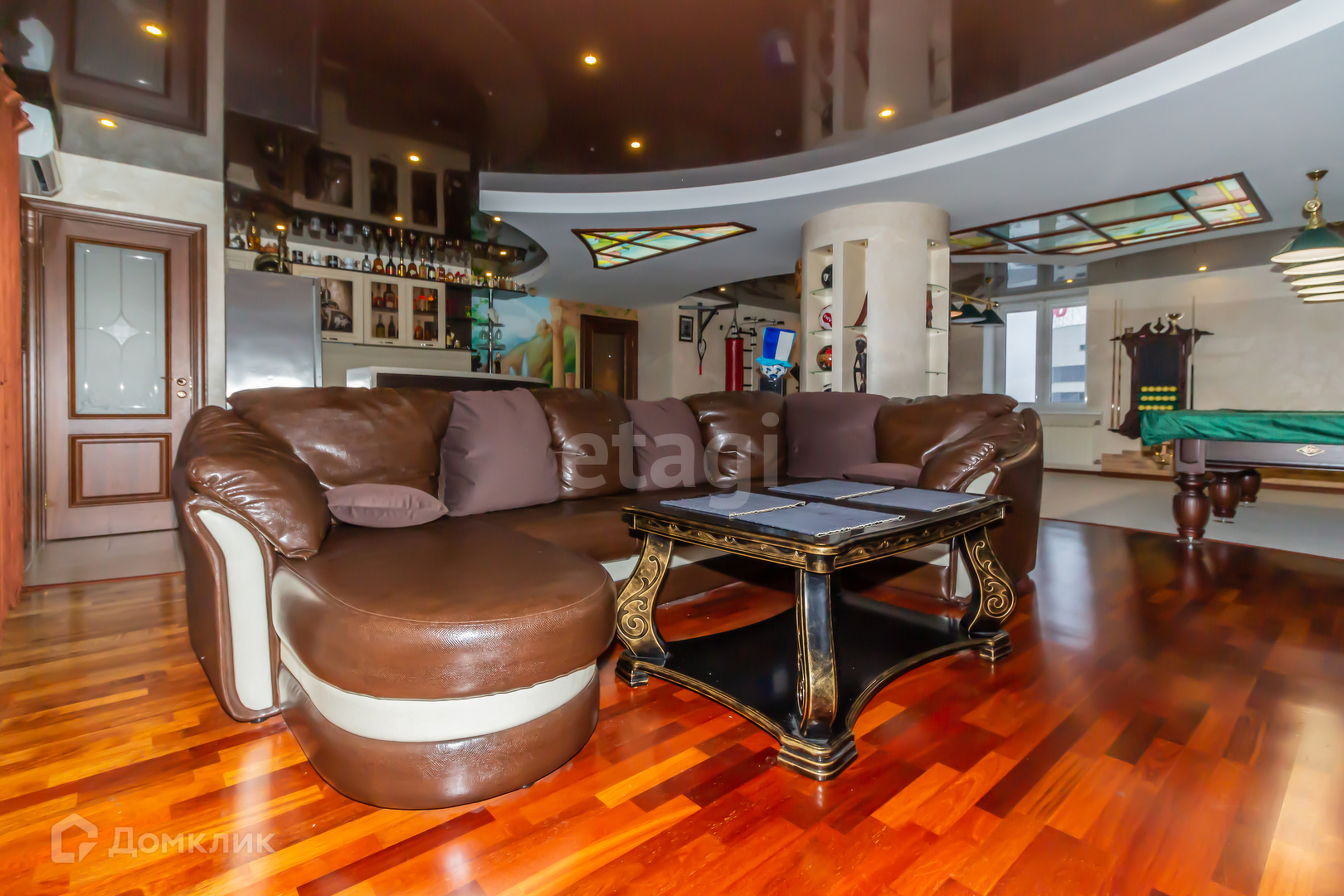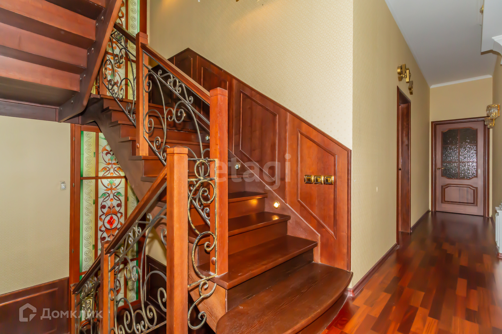 Ремонт квартиры в Римском стиле. Двери и лестницы, кухня и т.д. из натурального дерева, пол покрыт паркетом и плиткой из Италии. Сантехника, плитка, обои, шторы и все аксессуары из Италии. Установлено 9 шикарных витражей с подсветкой на потолках и стенах. Межэтажные лестницы и зеркала в санузлах оборудованы кованной сталью. Размещены 4 кондиционера, водонагреватель Италия на 200 литров, 5 телевизоров, 3 холодильника. Также установлены система «Умный дом», видеонаблюдение, сигнализация.