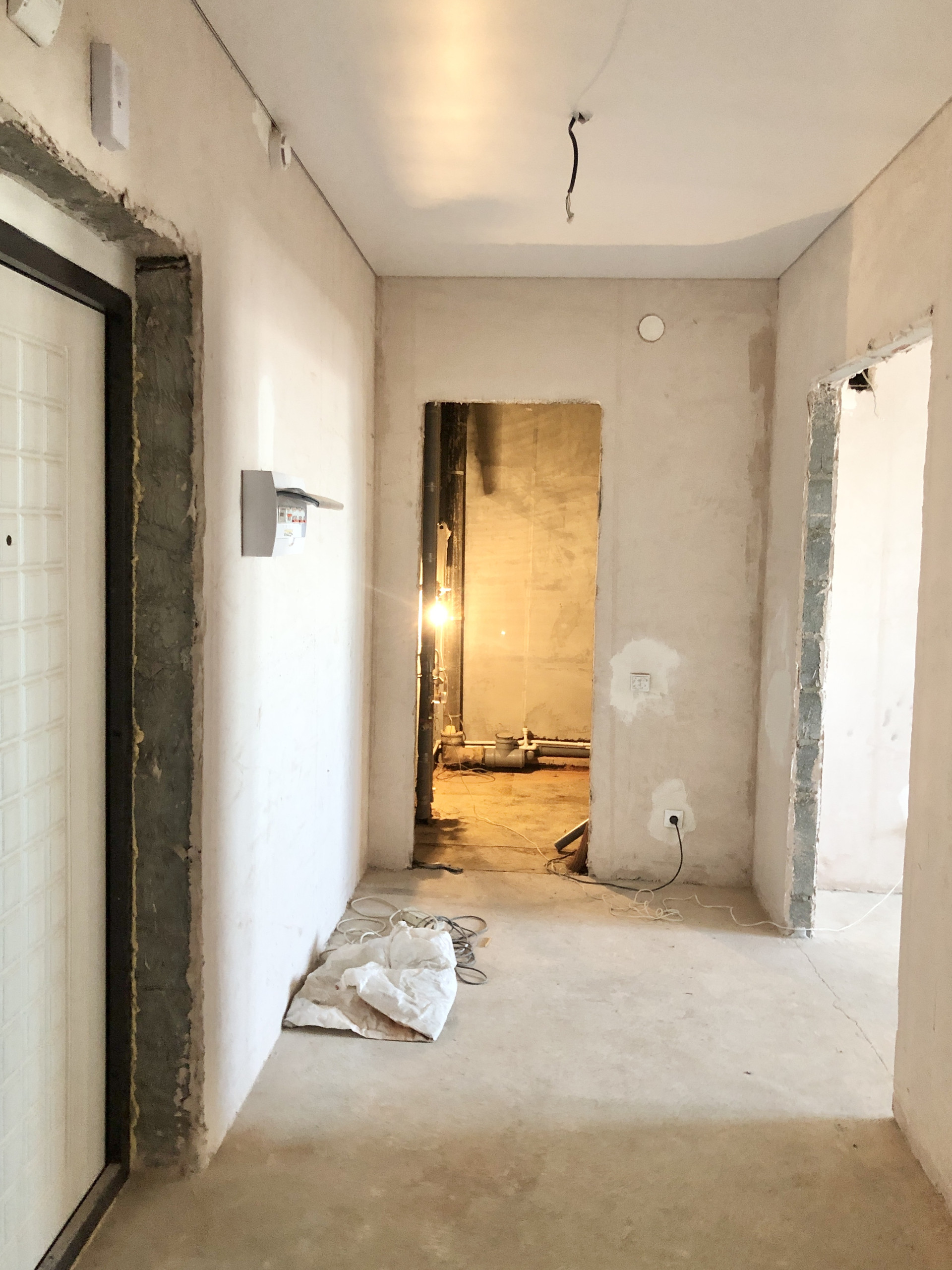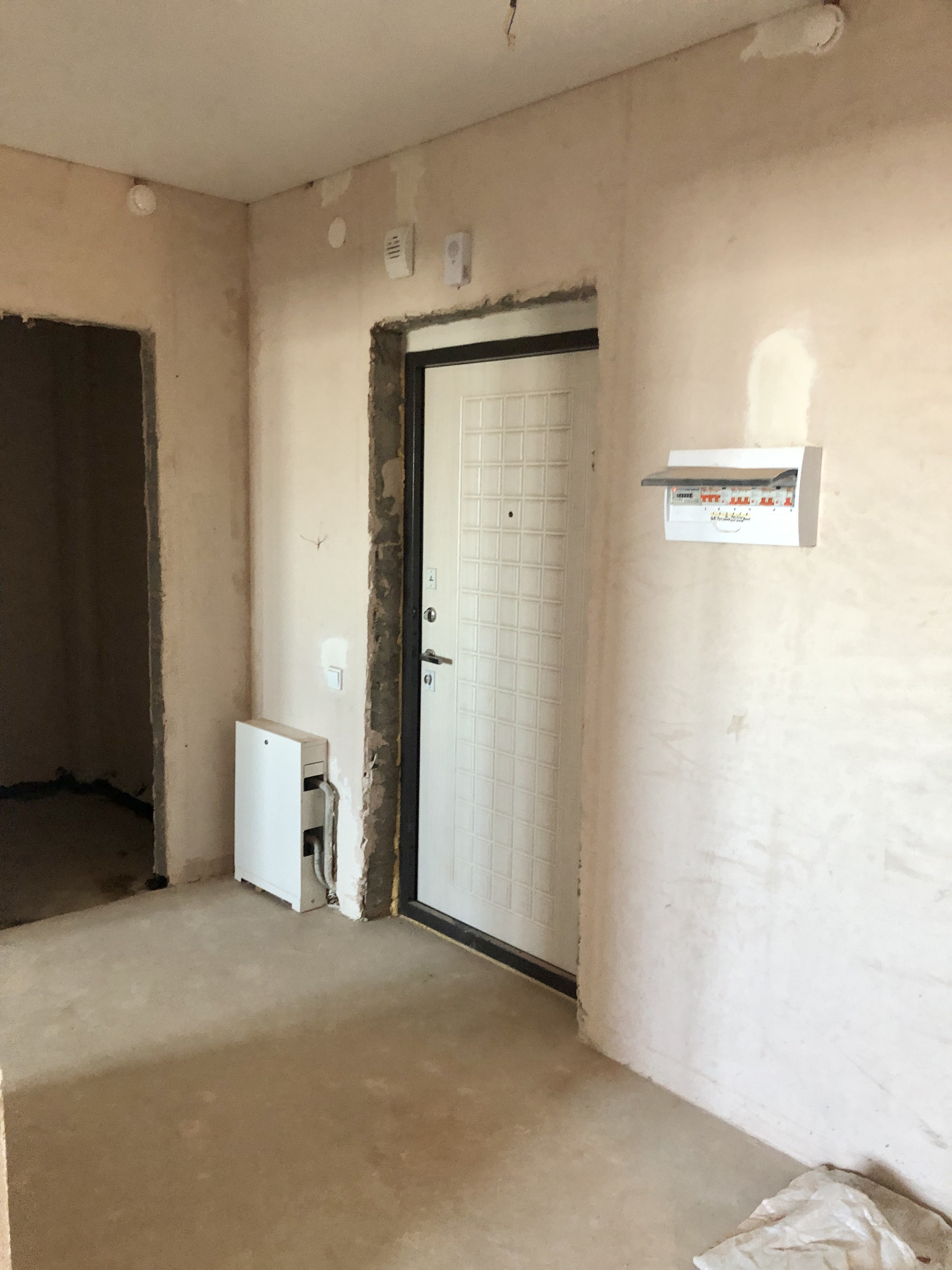 Стены оштукатурены. Грамотная электропроводка по всей квартире.