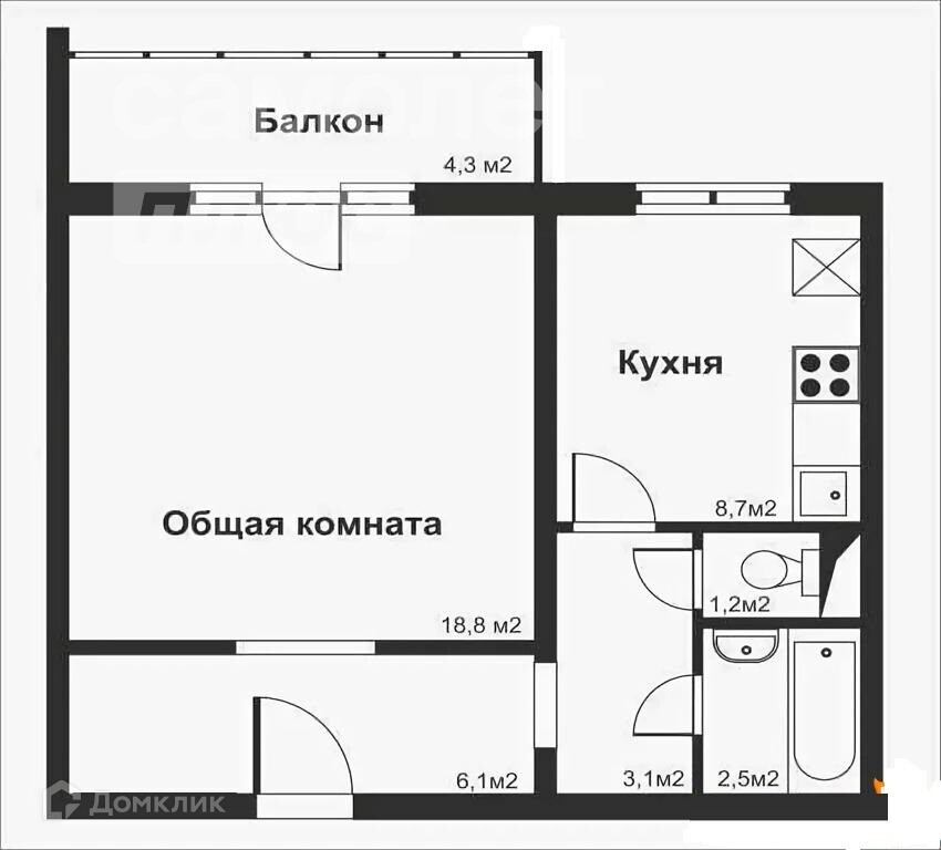 Общая площадь 40.5 м2