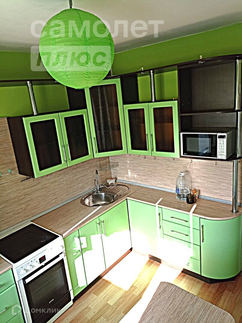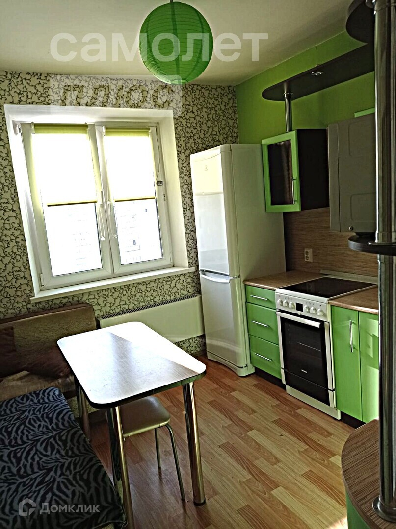 В квартире остается кухонный гарнитур и встроенный шкаф купе.