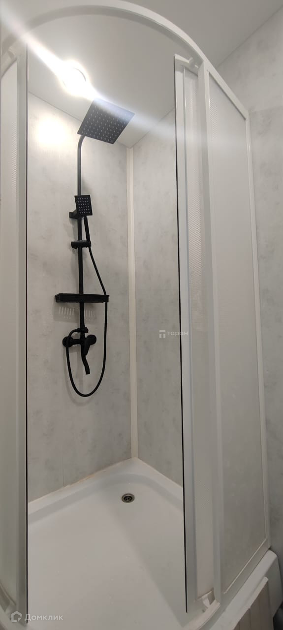 Санузел совмещен, душевая кабина с тропическим душем. Напольное покрытие - керамогранит.