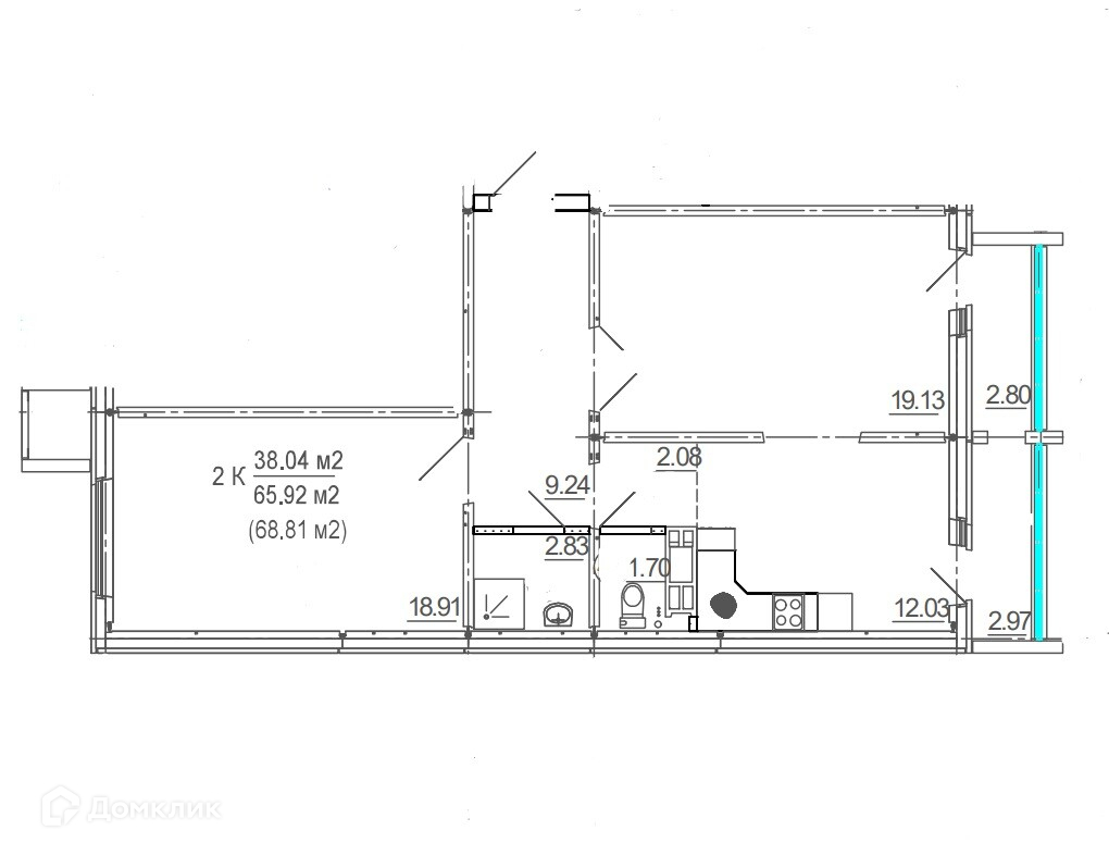 Общая площадь 65.6 м2
