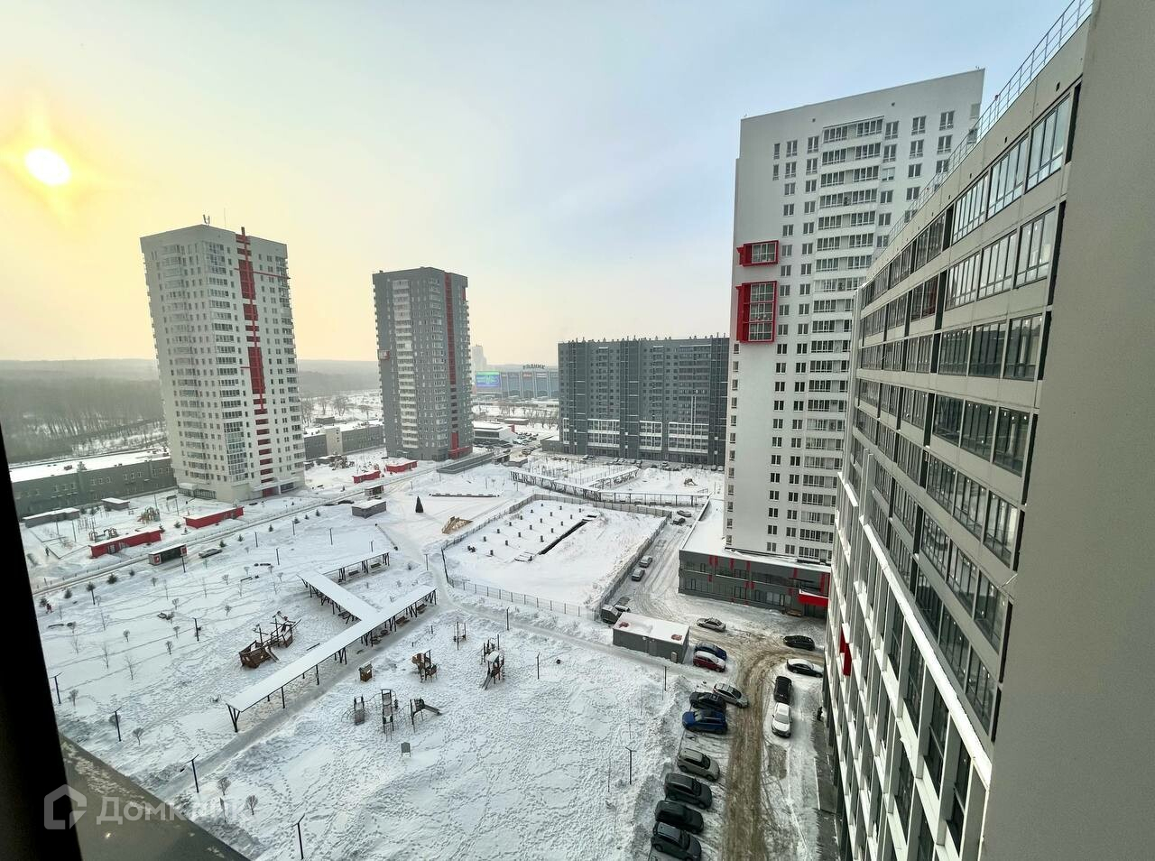 Квартира располагается на 14 этаже. Окна выходят на детский сад - восток, и во двор - запад.