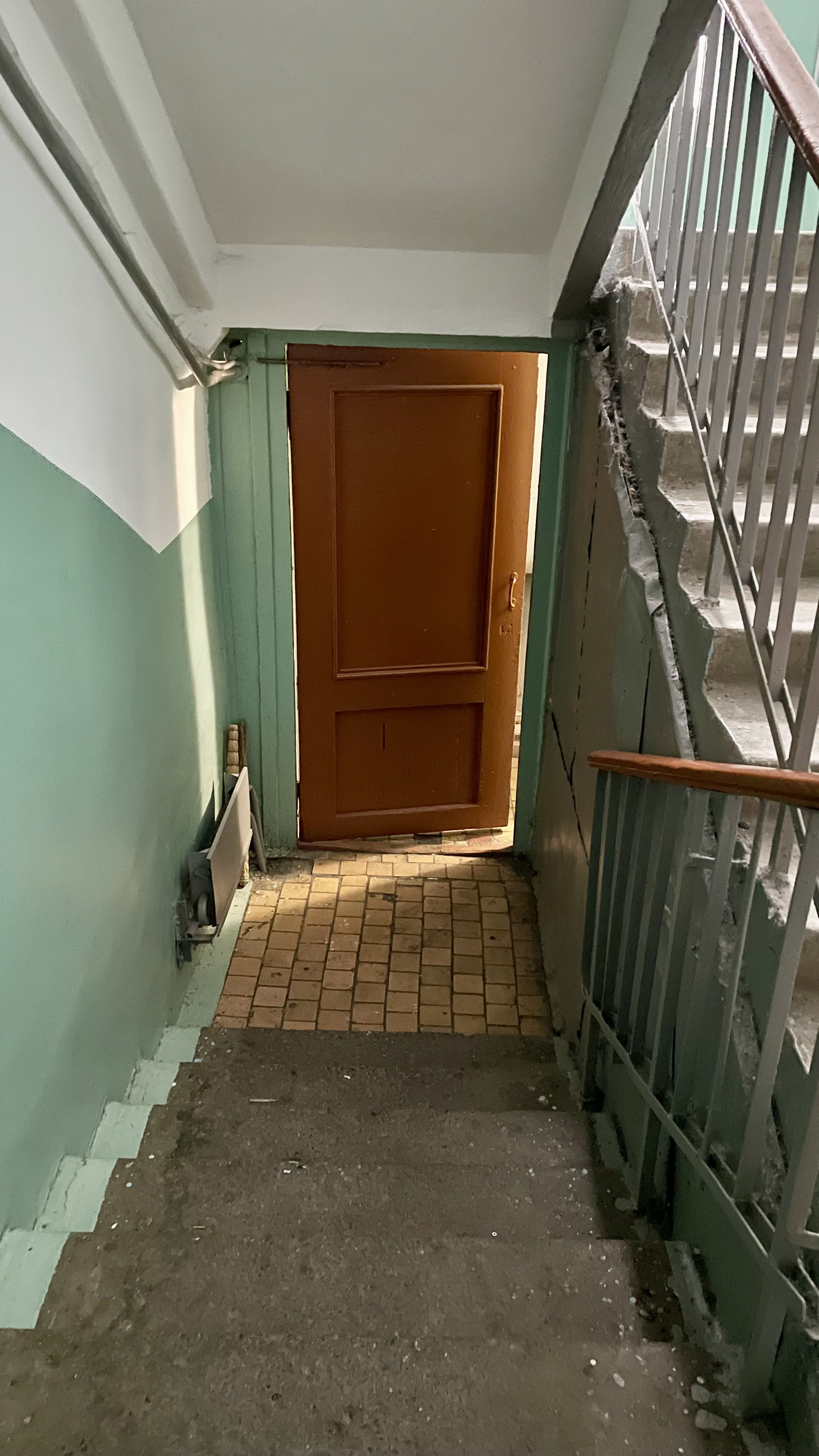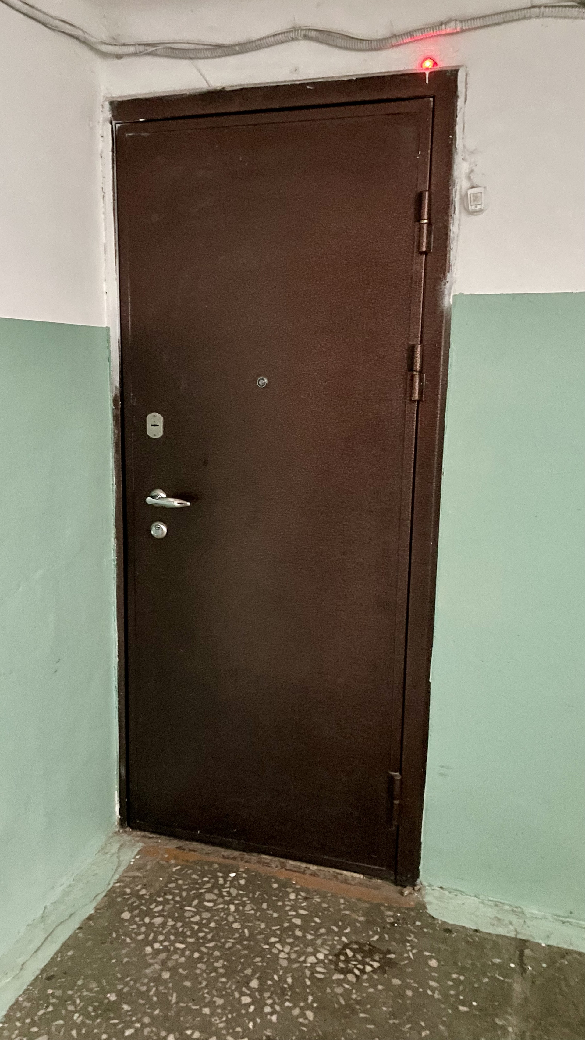 На лестничной площадке три квартиры, но именно у этой квартиры нет ситуации дверь-в-дверь.