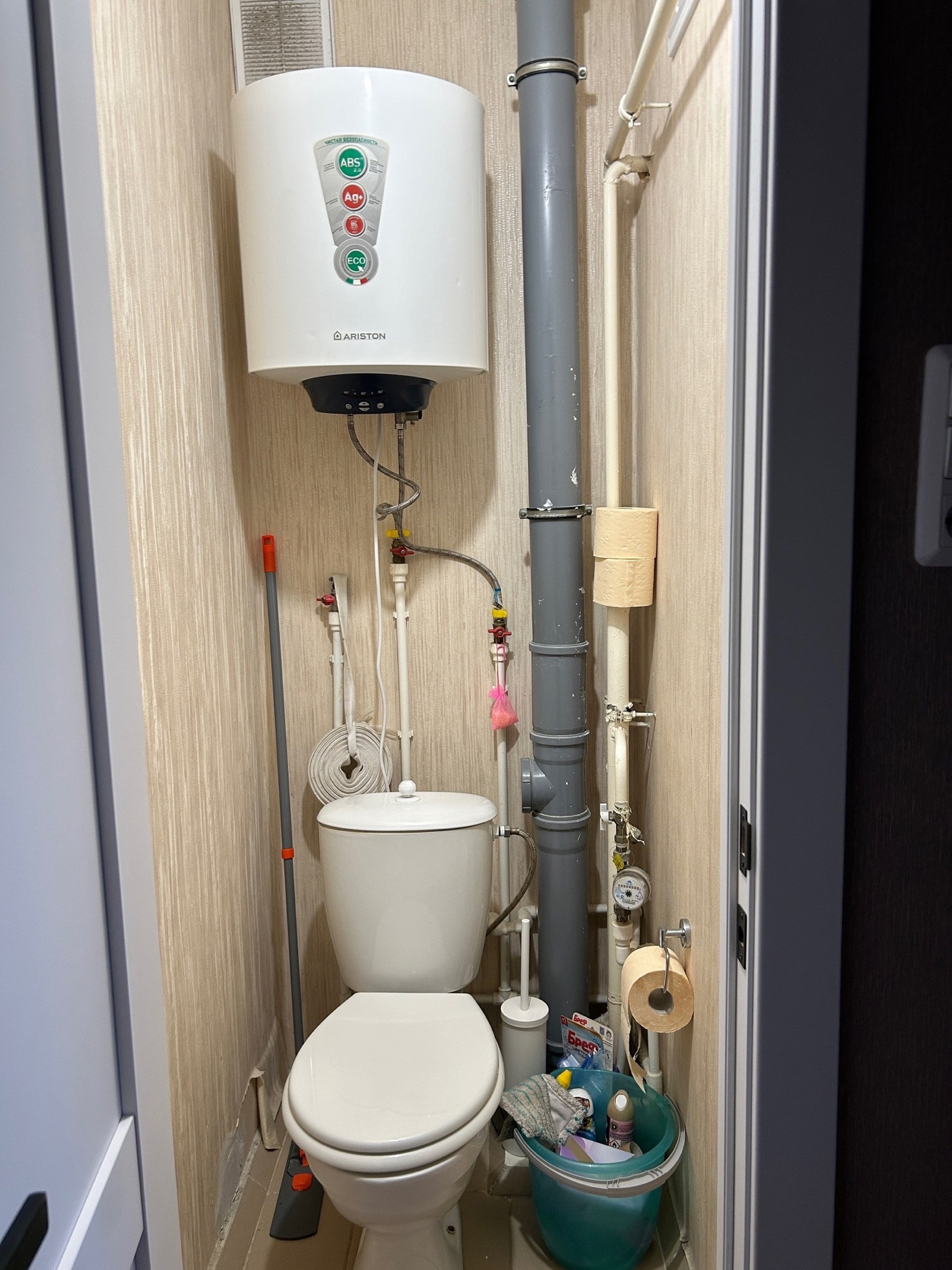 Приборы учета электропотребления и счетчики воды находятся в квартире.