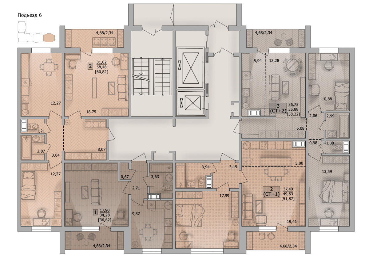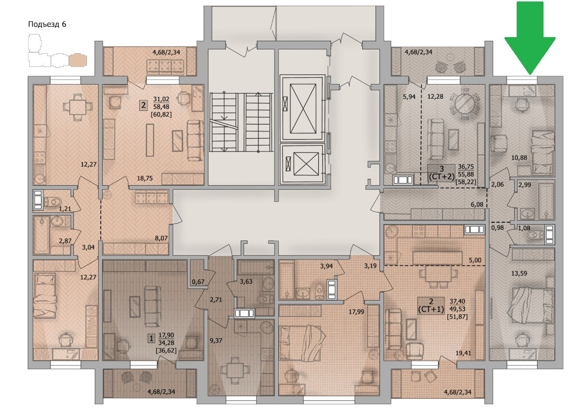 Общая площадь 56 м2