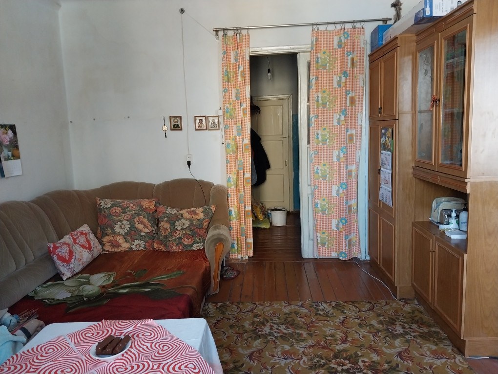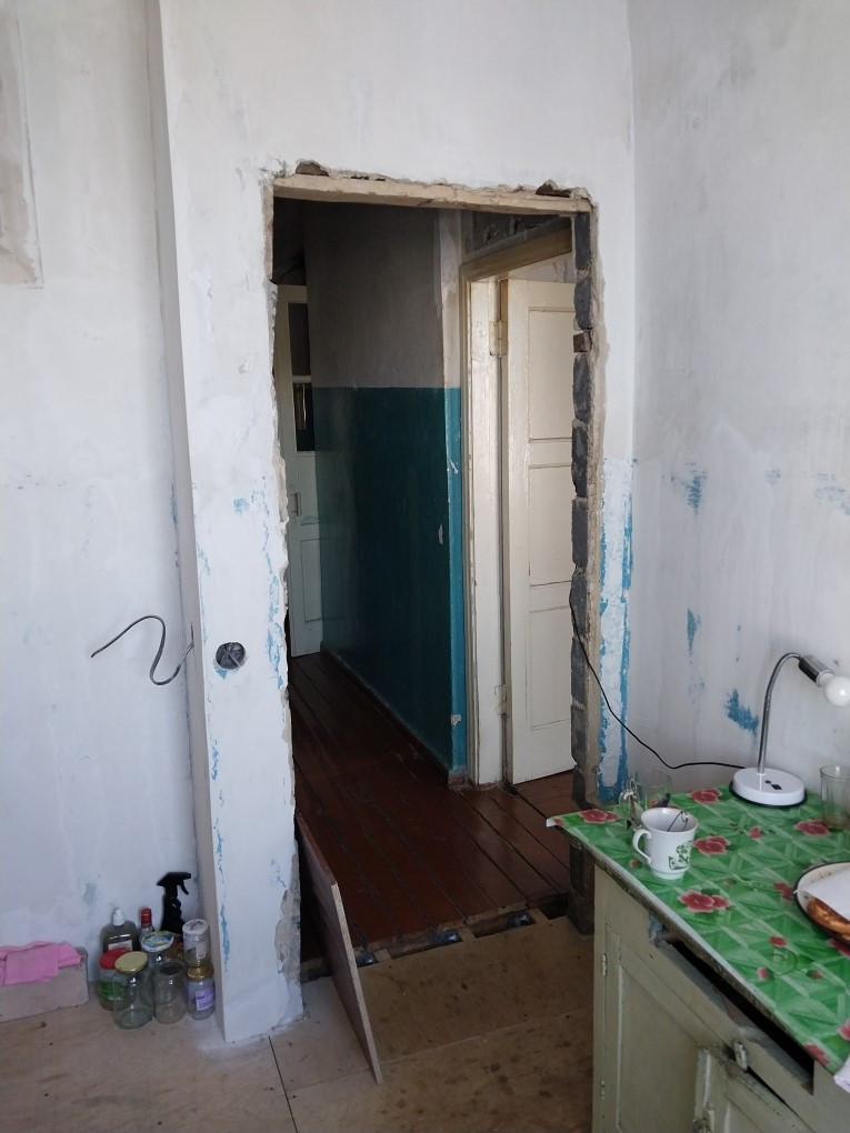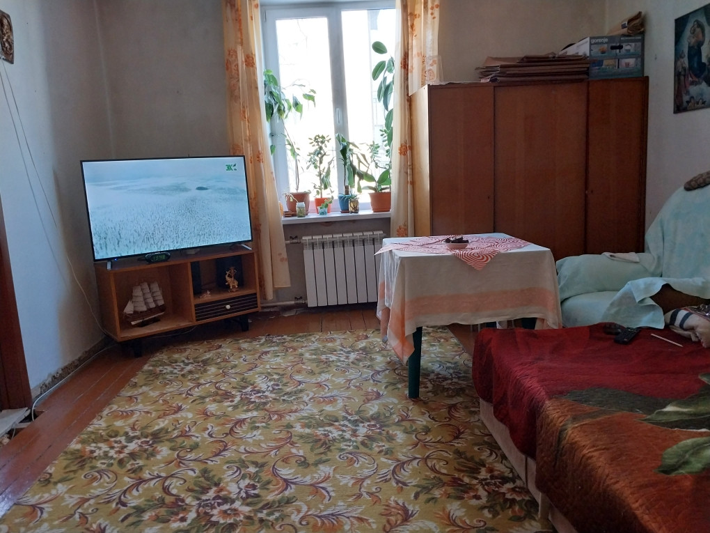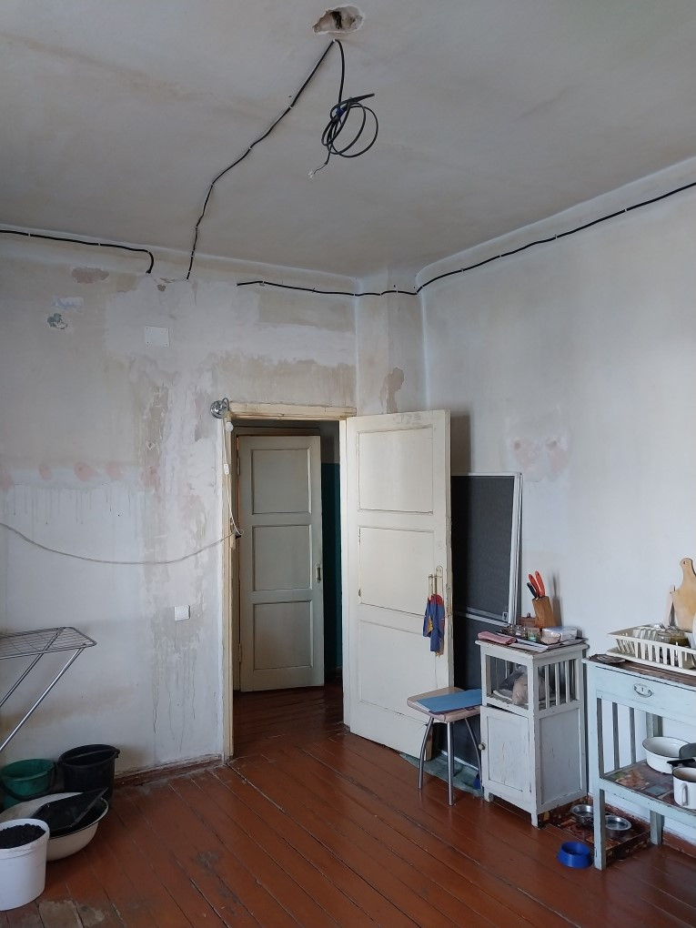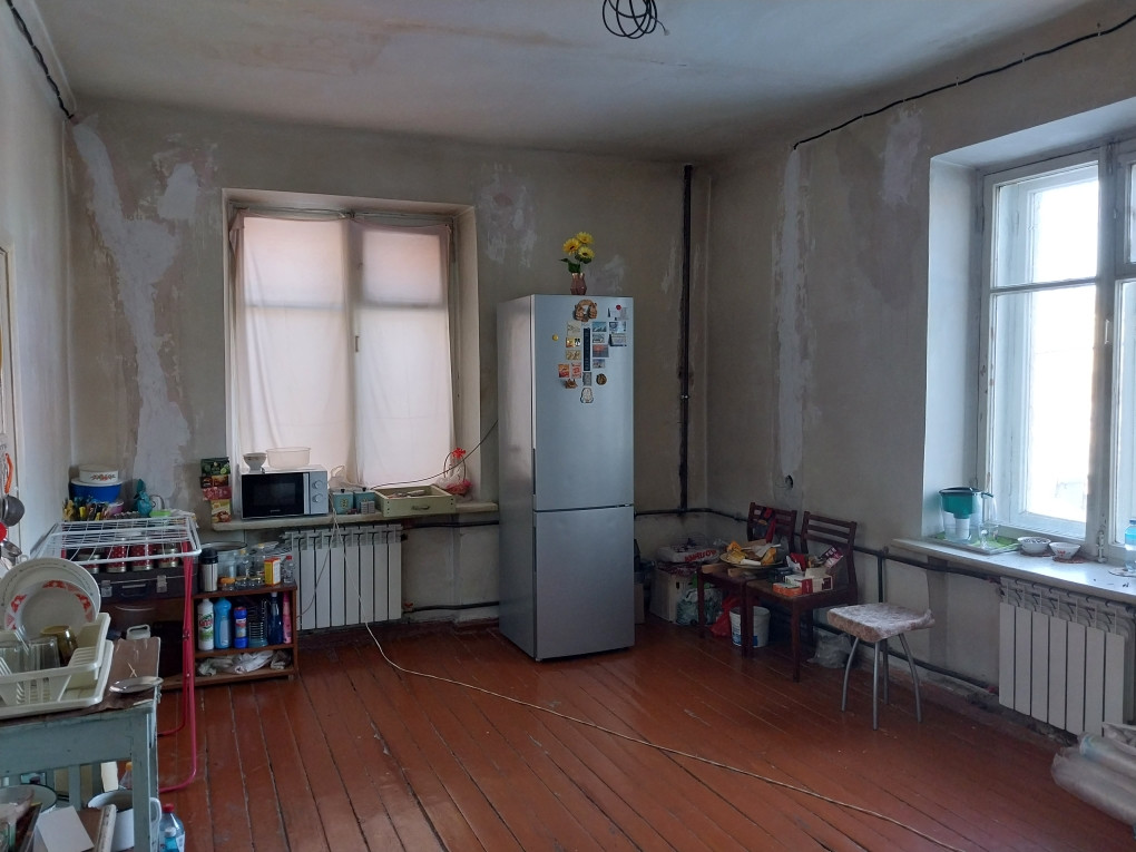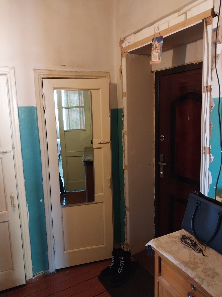 Просторная квартира с высокими потолками, очень тёплая, сан.узел раздельный, в прихожей есть две ниши под гардероб. Брат начинал делать в ней ремонт, доделал только в одной маленькой комнате, в остальных помещениях нужно приложить руки (и деньги). Поменяны трубы, радиаторы отопления, электропроводка.