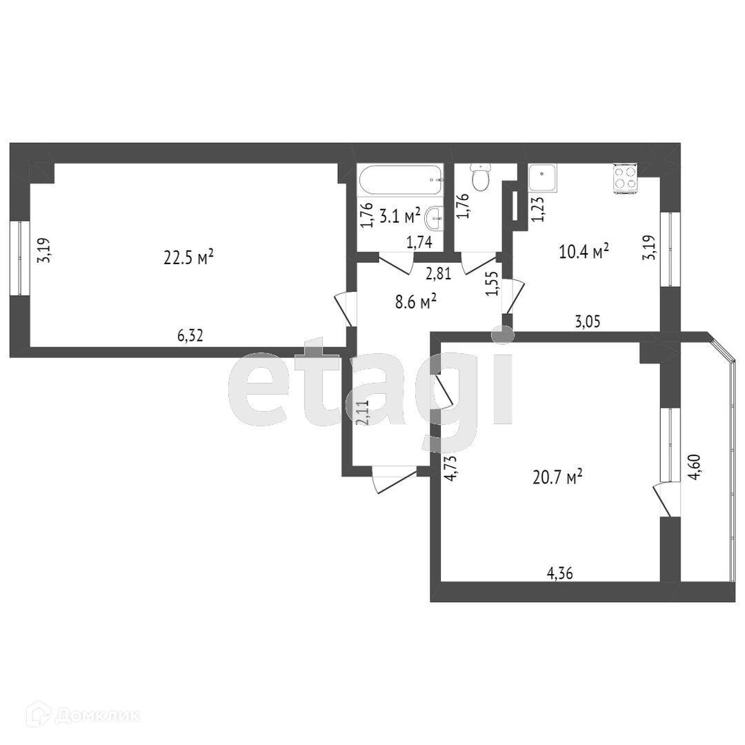 Балкон, лоджия 1 балкон