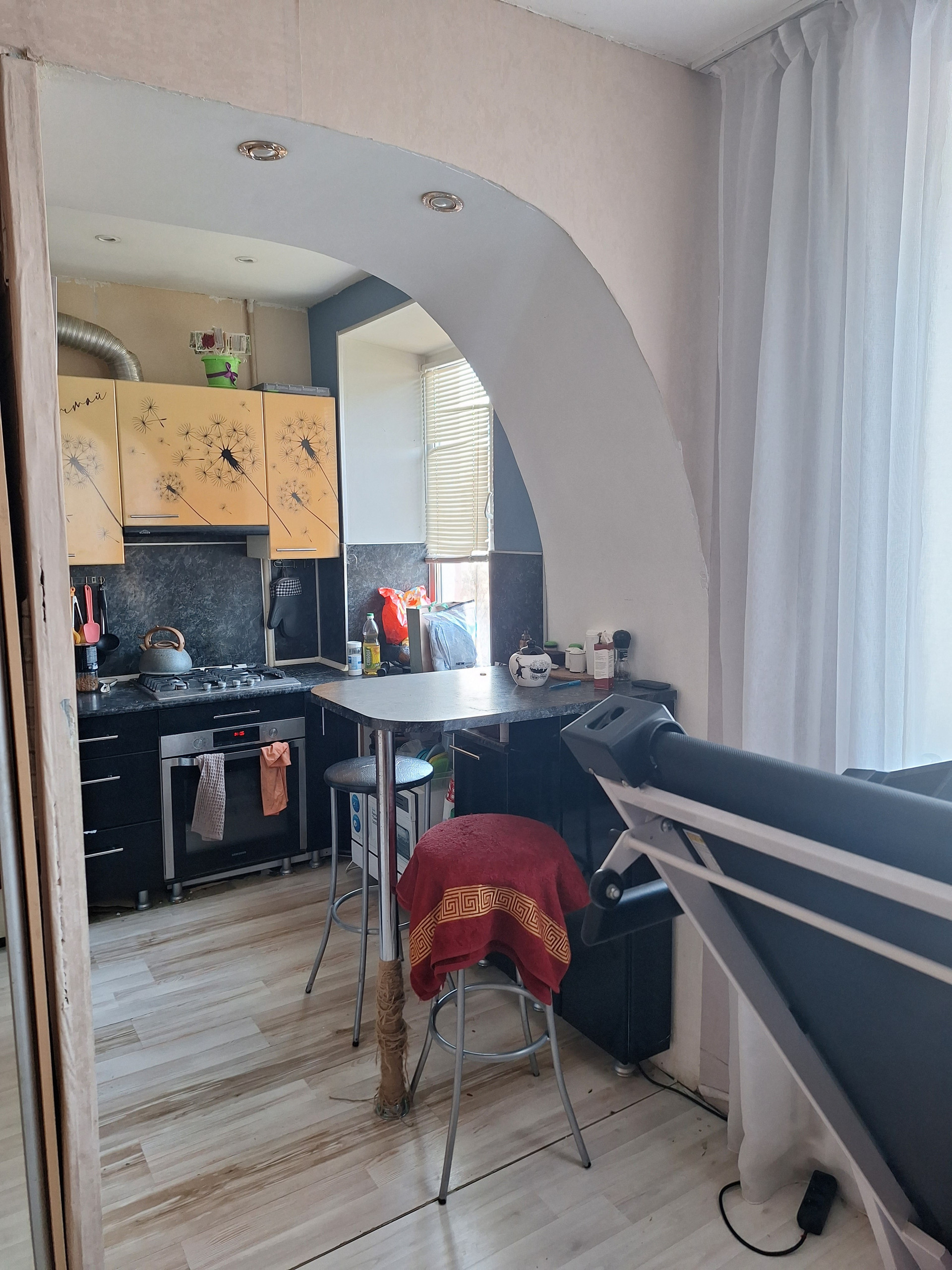 Уютная, светлая, 2-комнтная квартира, выполняющая фунционал 3 -комнатной в жилом состоянии, евро/окна, натяжной  потолок- зал,   сан/узел в кафеле, качественная входная дверь,  пол ламинат ! Балкон - застеклён! Новым хозяевам –вместительный шкаф-купе,  кухонный гарнитур  со встроенной техникой + стиральной машиной в подарок!
