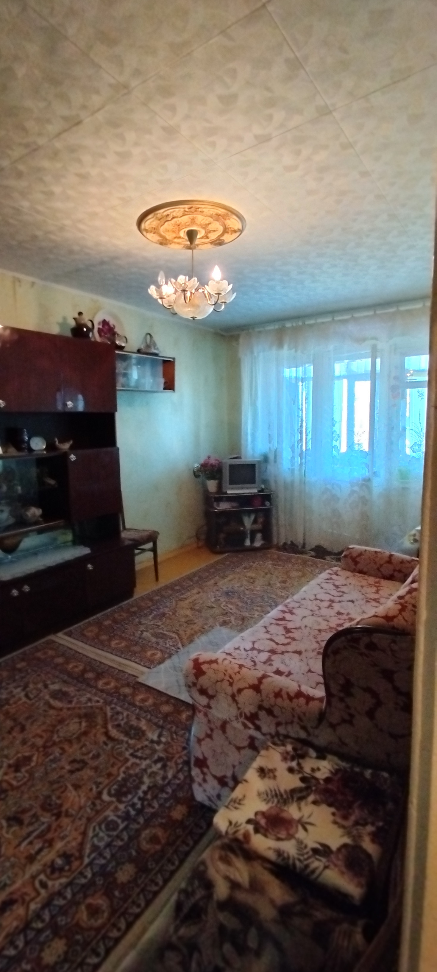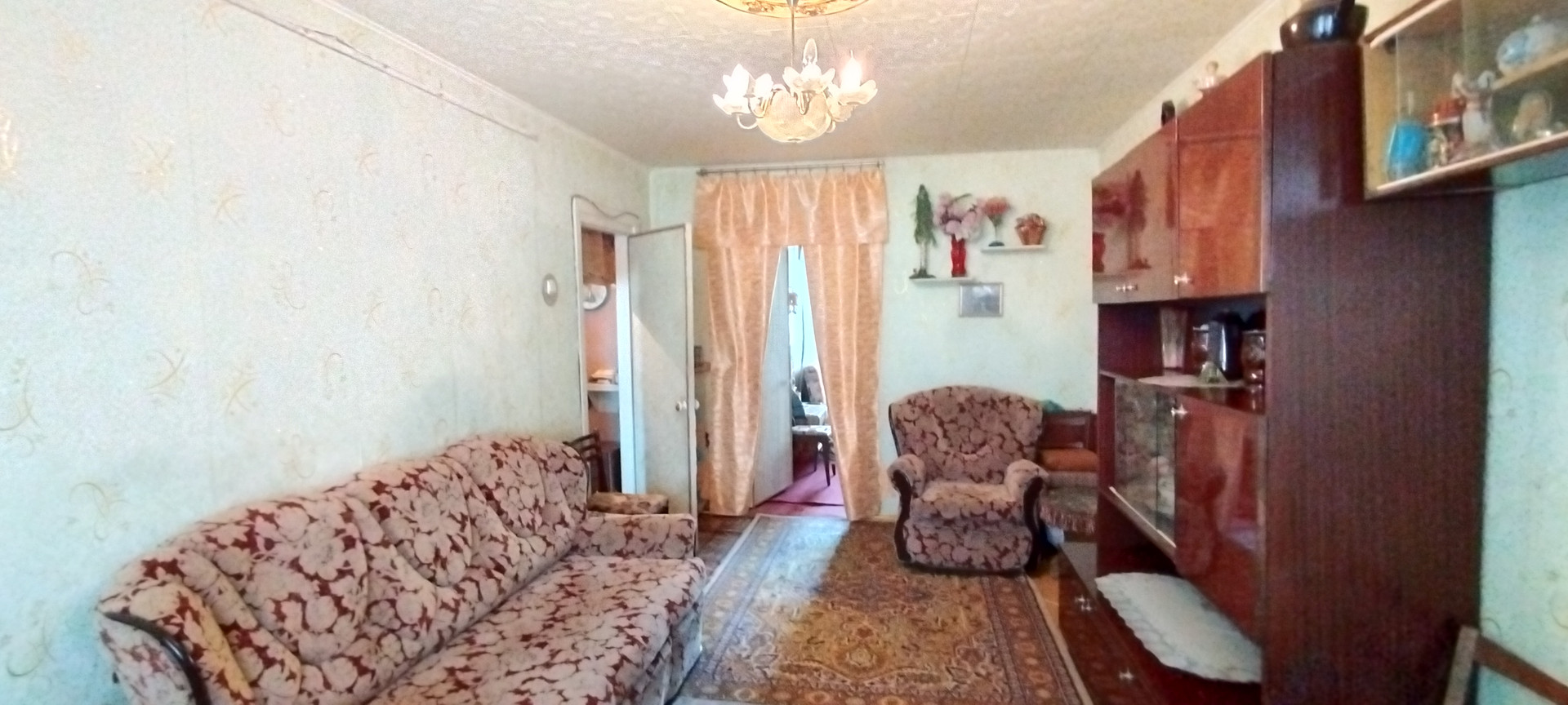 Квартира на 5 этаже, комнаты совмещённые (планировка позволяет разделить комнаты), балкон остеклён, санузел раздельный, установлено 2 евроокна на кухне и спальне, кровля на крыше не протекает! Состояние жилое, остаётся газовая плита, мойка, стенка , диван, стулья.