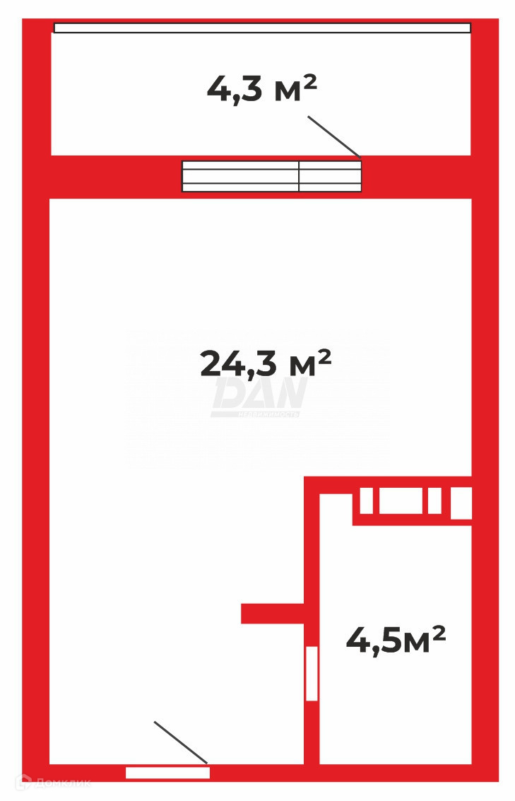 Общая площадь 24.3 м2