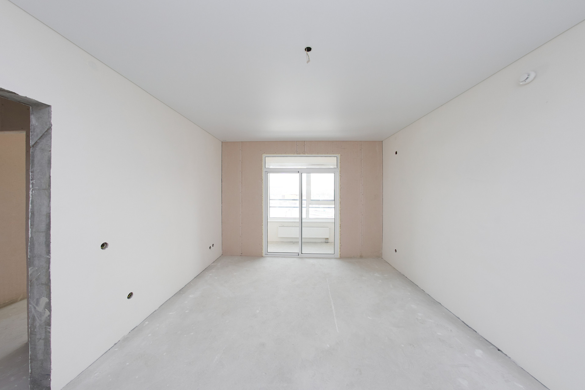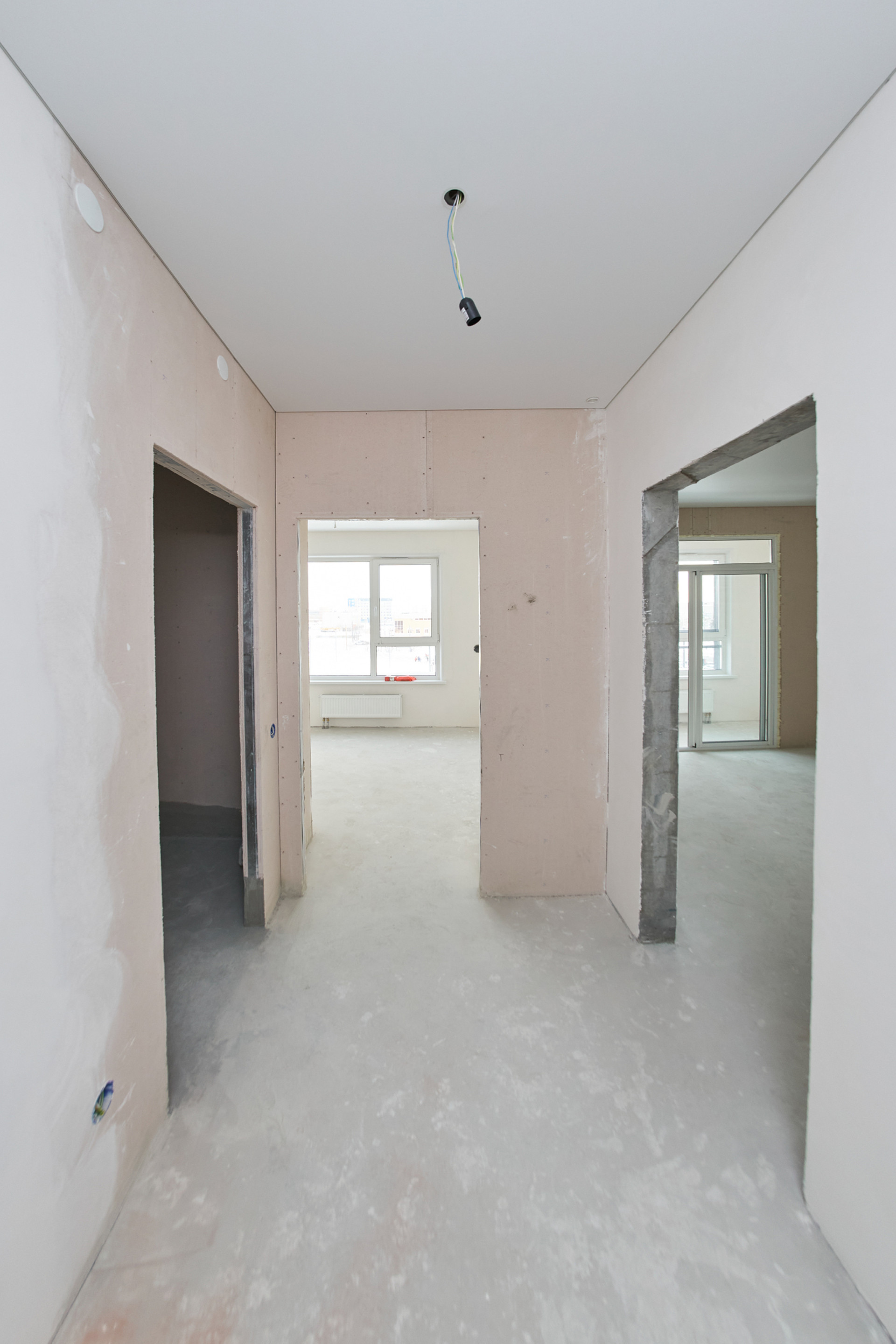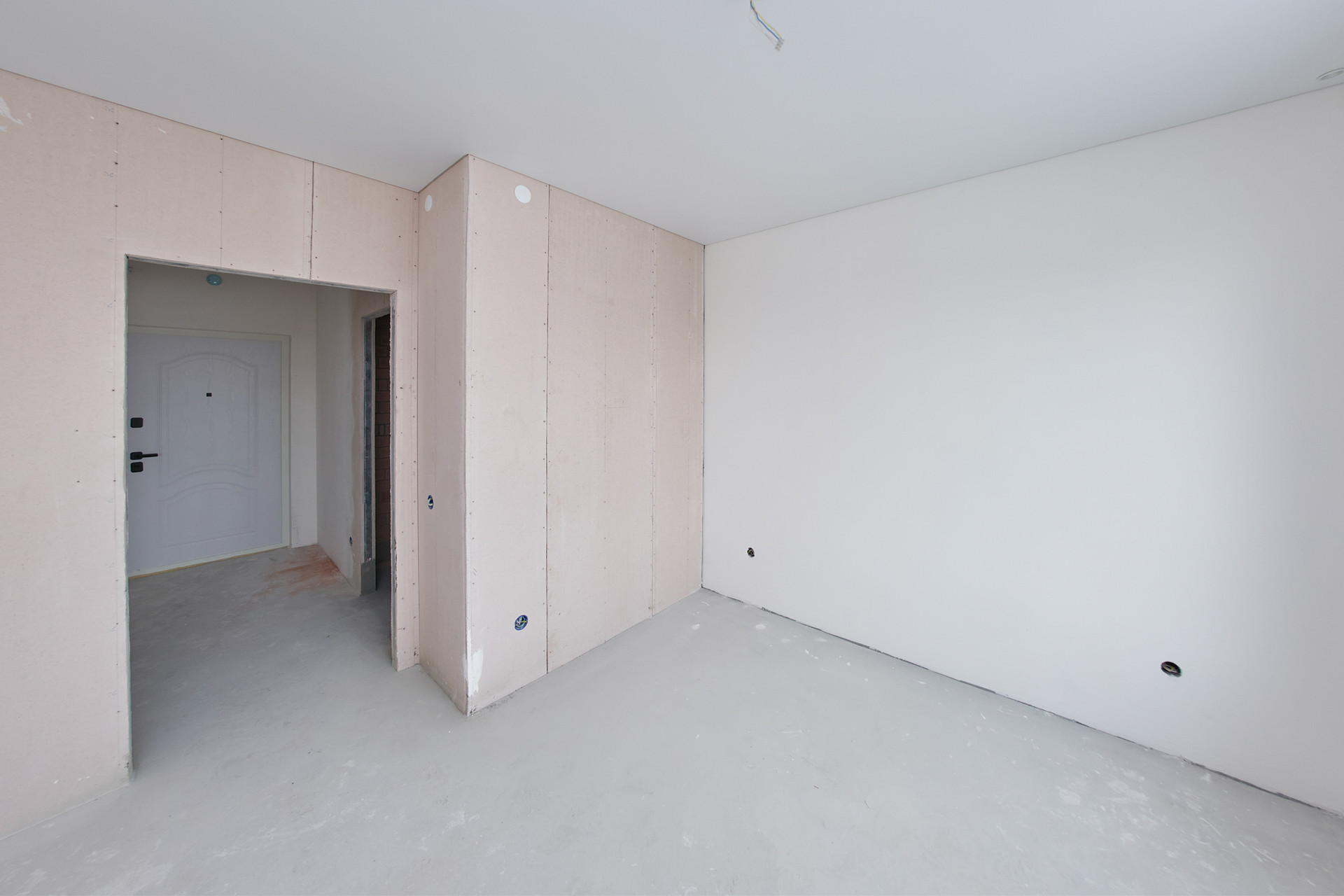 ⁃ стяжка пола, отштукатуреные стены, натяжной потолок.