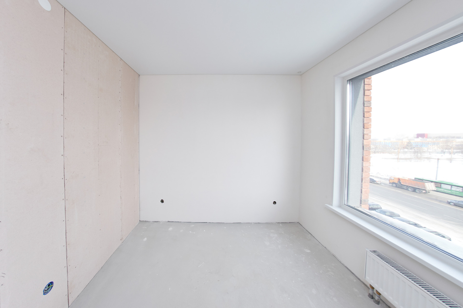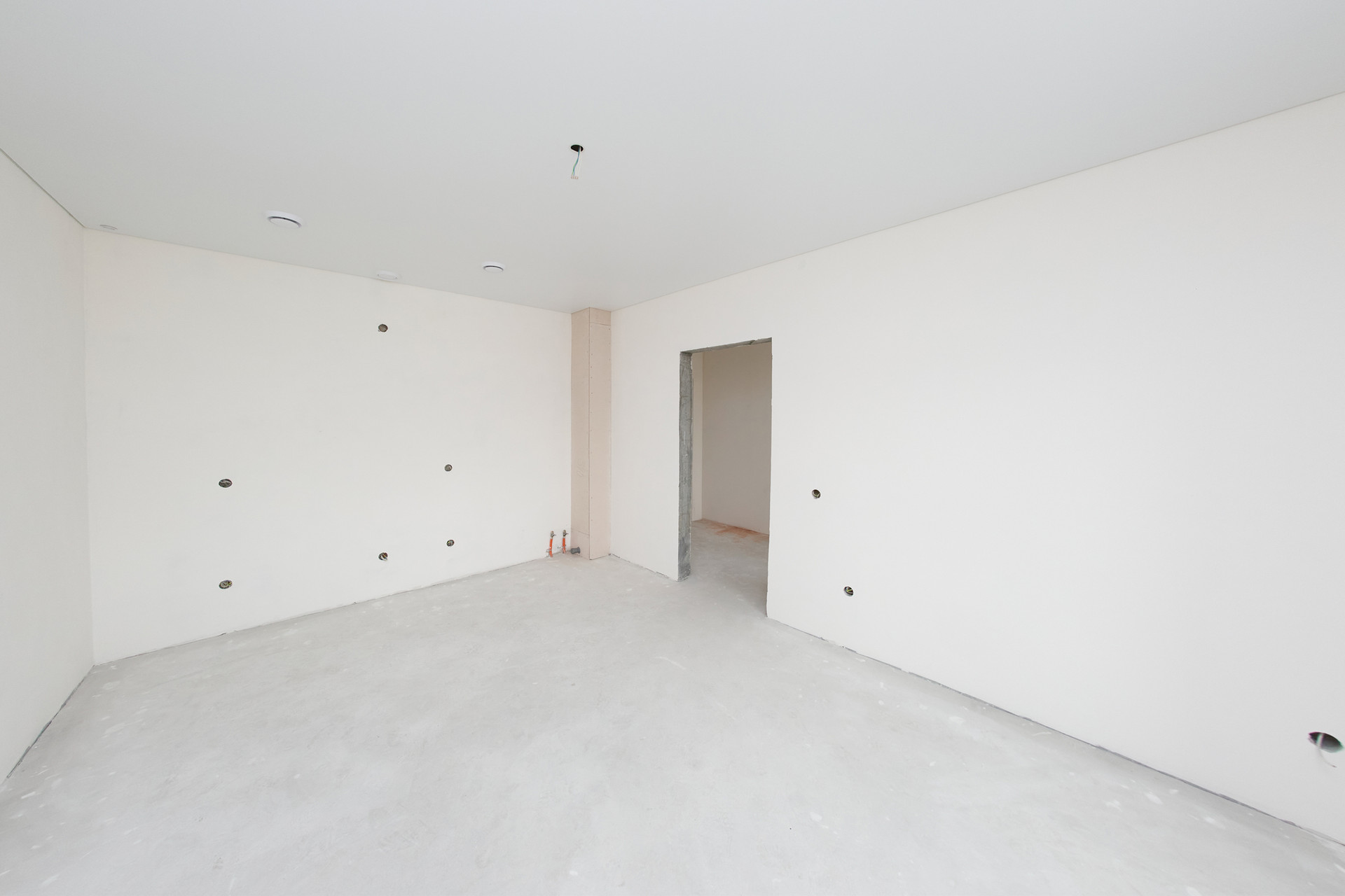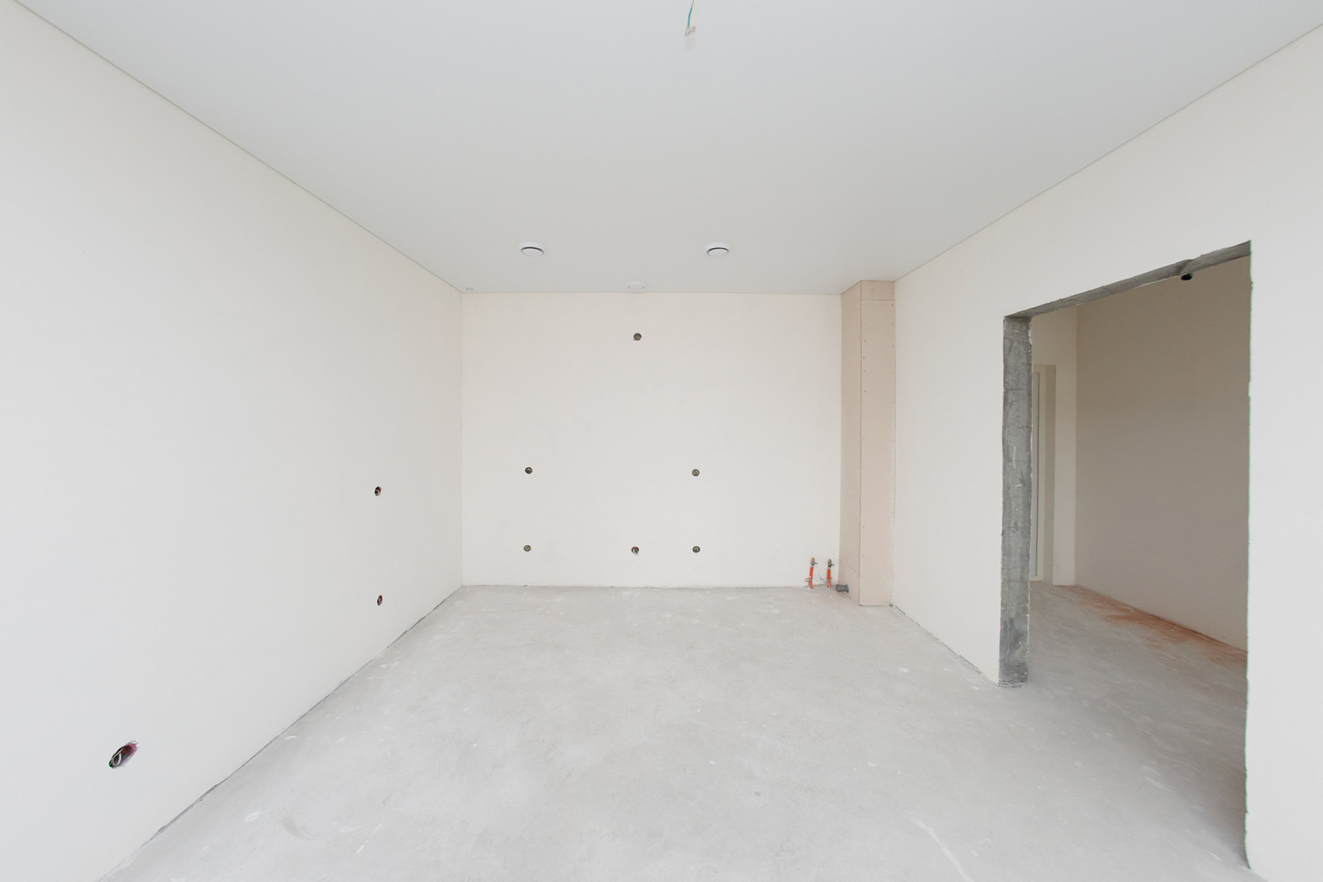 ⁃ стяжка пола, отштукатуреные стены, натяжной потолок.