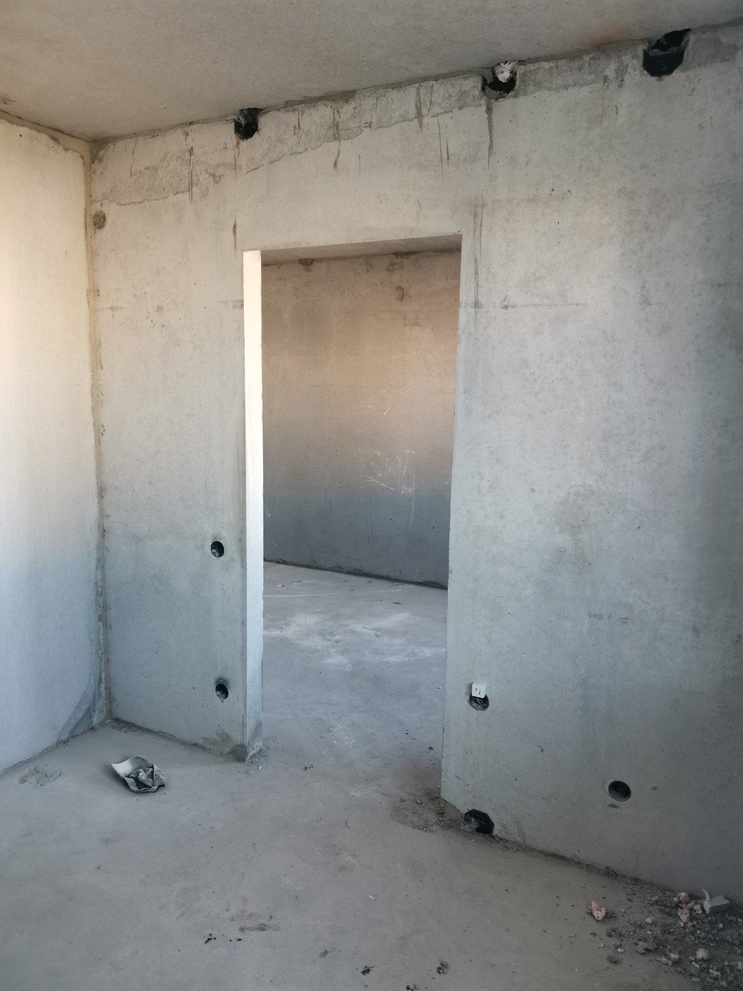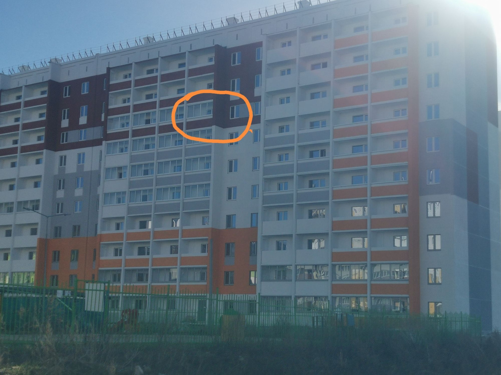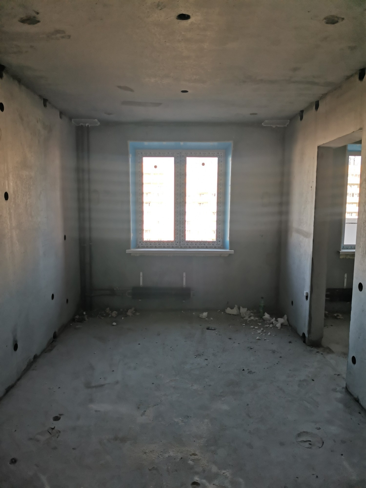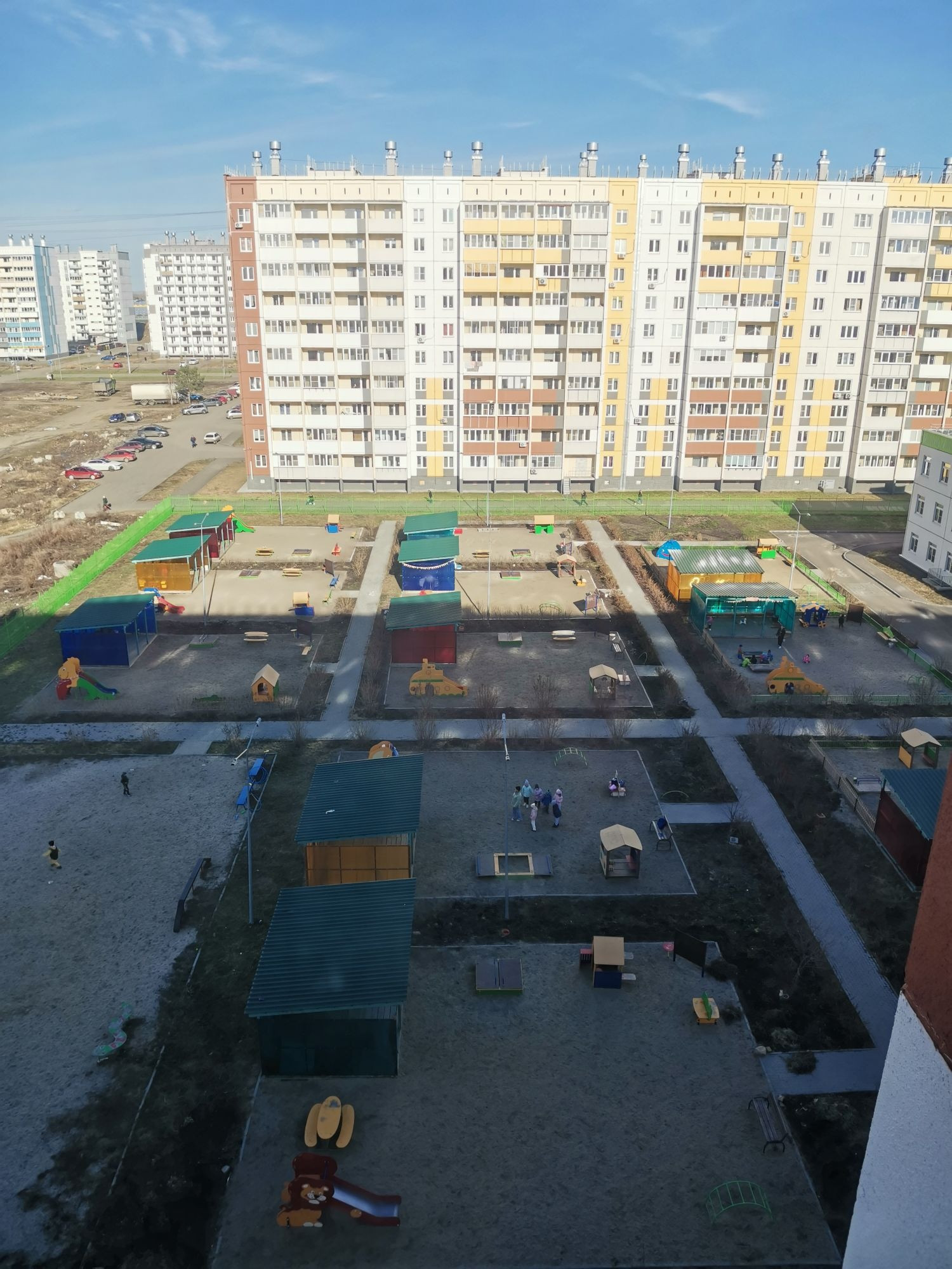 Новый дом, квартира без отделки, вид на детский сад