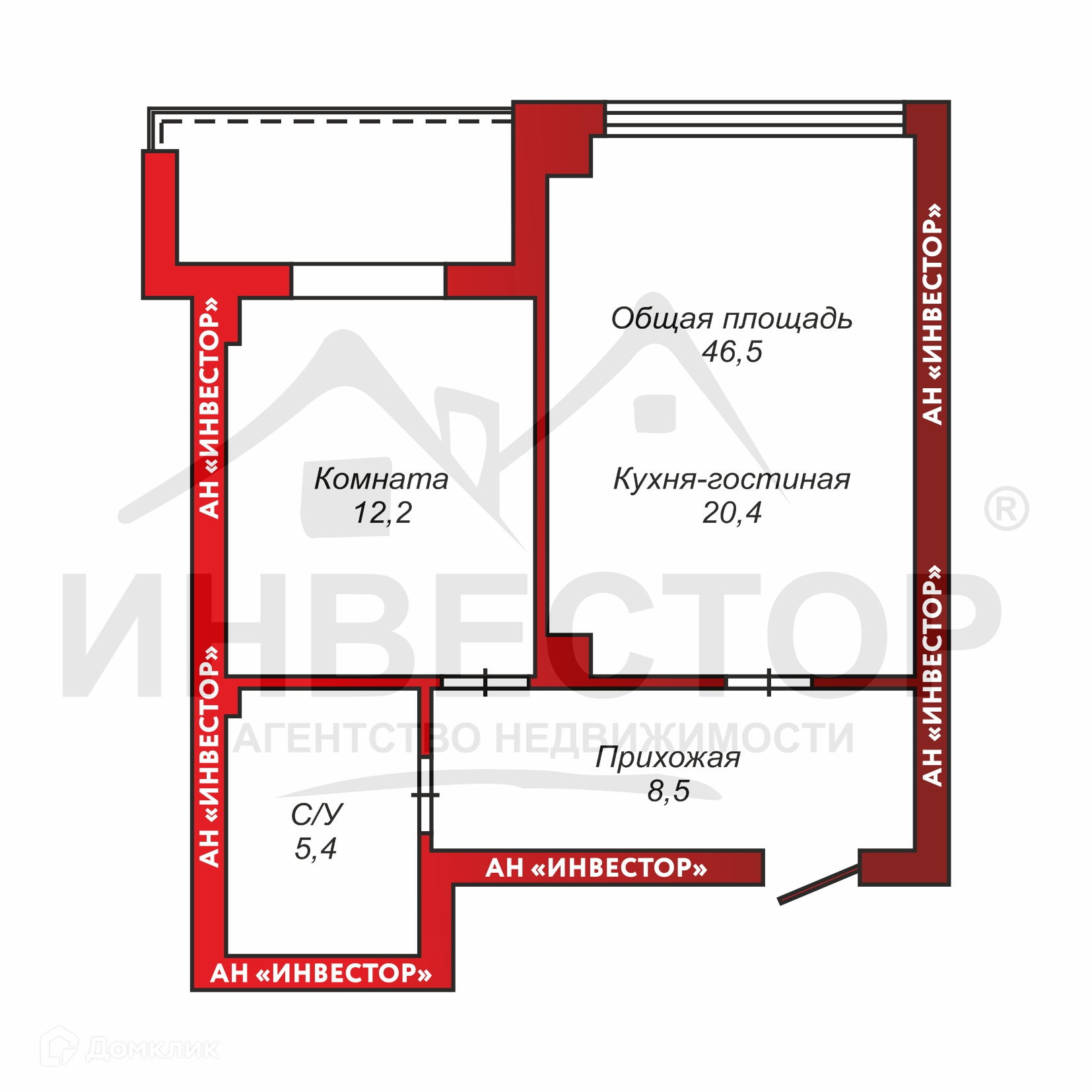 Общая площадь 46.5 м2