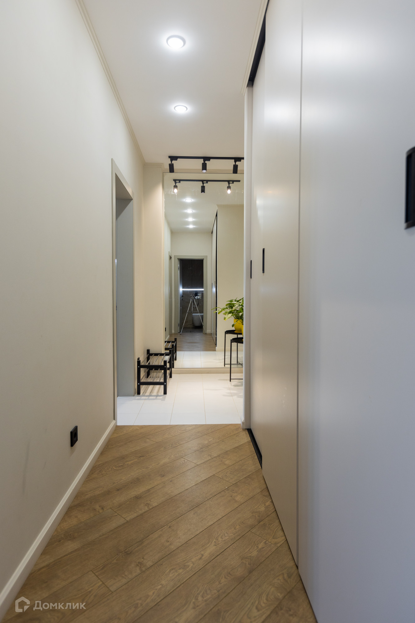 В прихожей огромный встроенный шкаф шириной 4м и высотой до потолка, так же зеркало во всю противоположную стену.