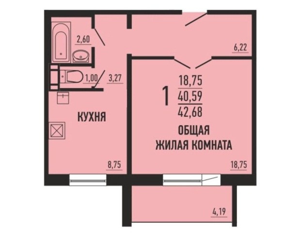 Общая площадь 41 м2