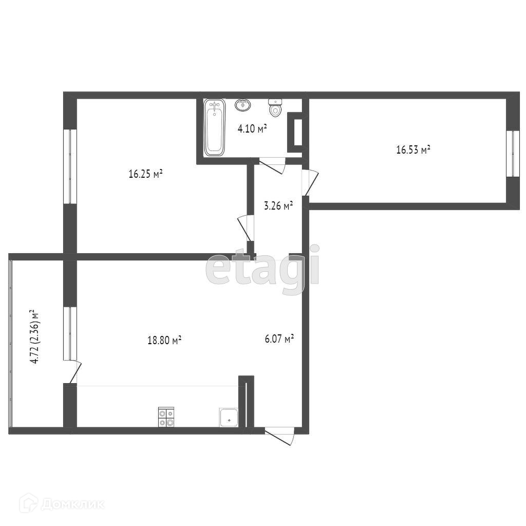 Балкон, лоджия 1 балкон