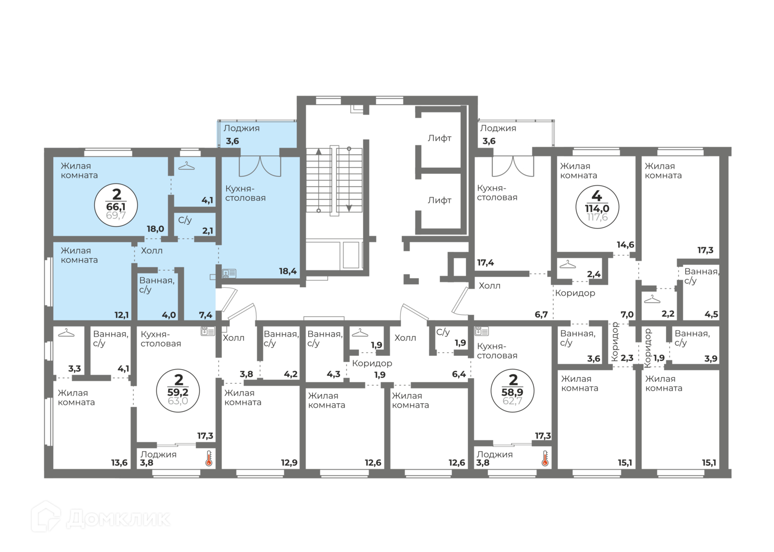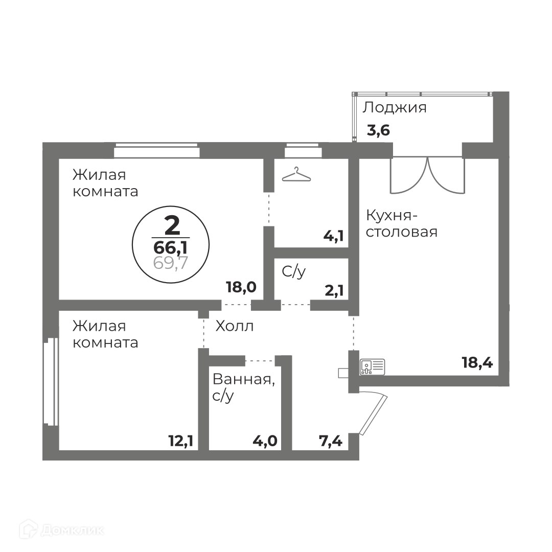 Общая площадь 66.1 кв.м.