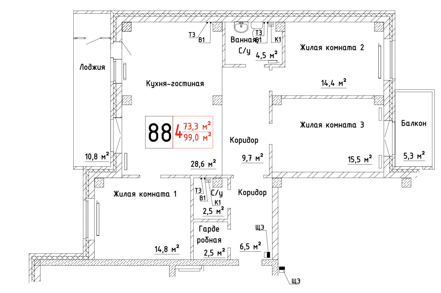 Общая площадь 98.8 м2