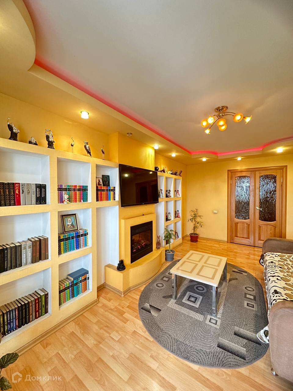 Также есть камин, который дополняет уют и спокойствие в квартире, дополнительно можно использовать в качестве обогревателя.