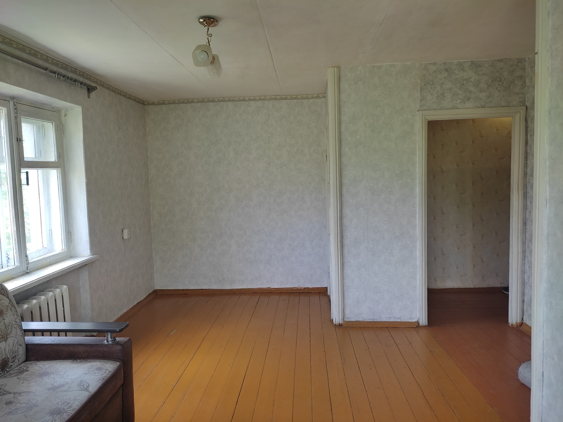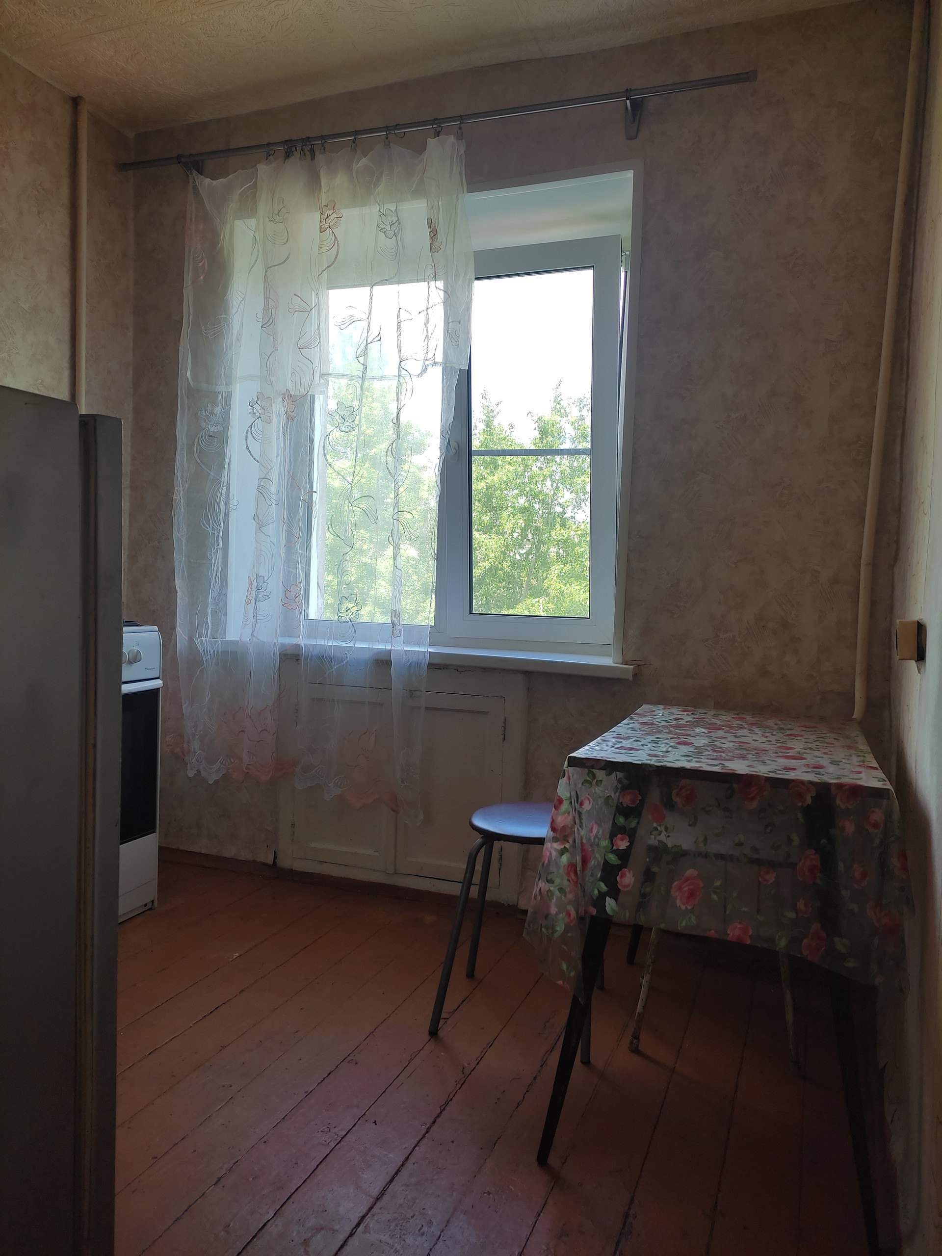 Однокомнатная хрущевка, состояние жилое. Пол деревянный, крашенный, вполне приличный. В кухне окно пластиковое, в комнате - деревянное. Балкона нет. Имеется кладовка.