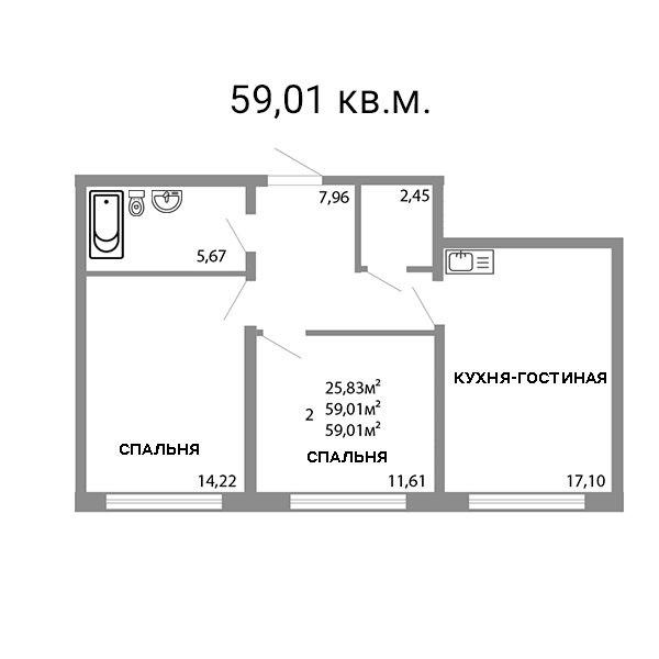 Общая площадь 59 м2