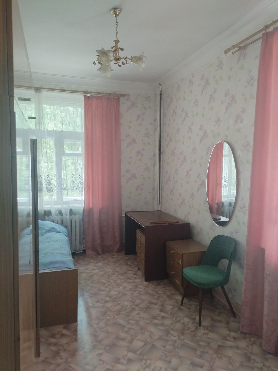 Большая квадратная комната с балконом и светлая спальная (можно с мебелью).