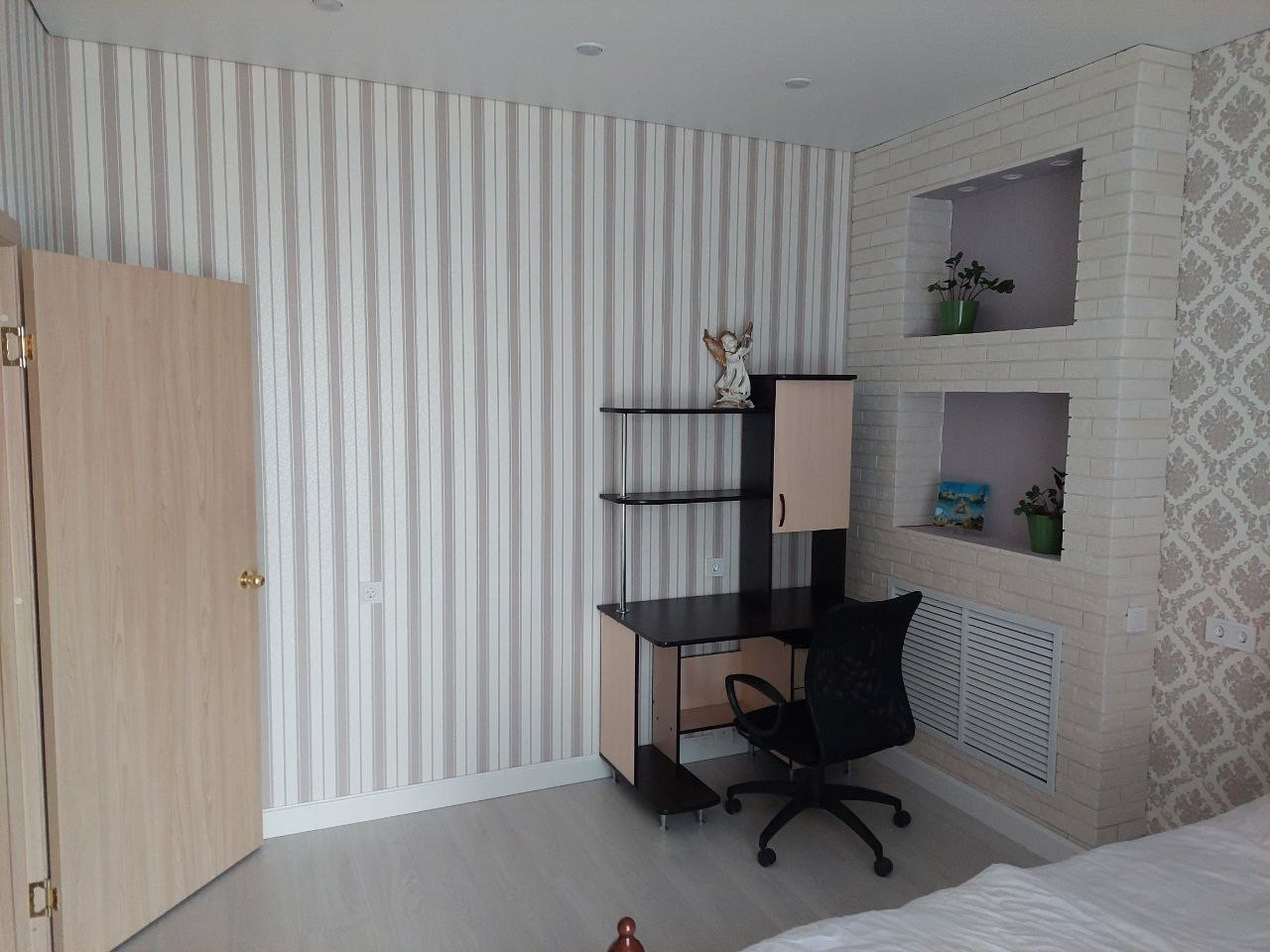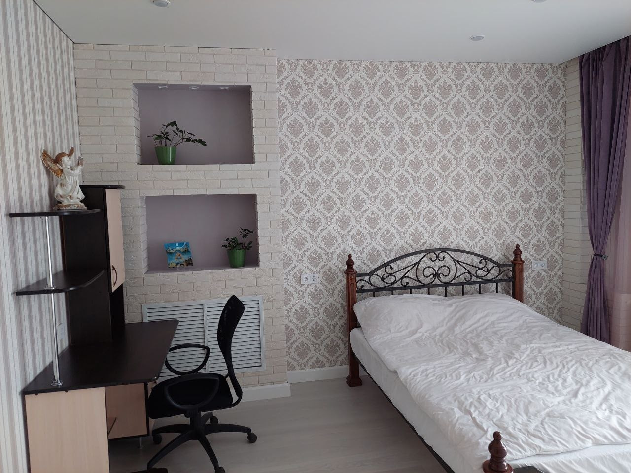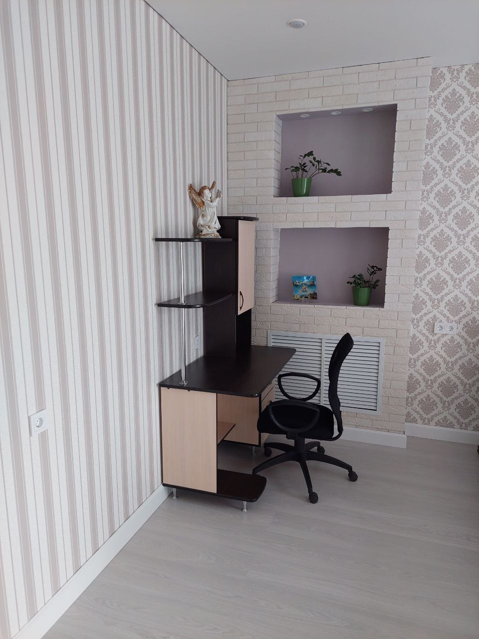 В квартире остается: огромный встроеный шкаф купе, хороший кухонный гарнитур с системой очистки воды (без техники), диван на кухне. Хорошая входная железная дверь.