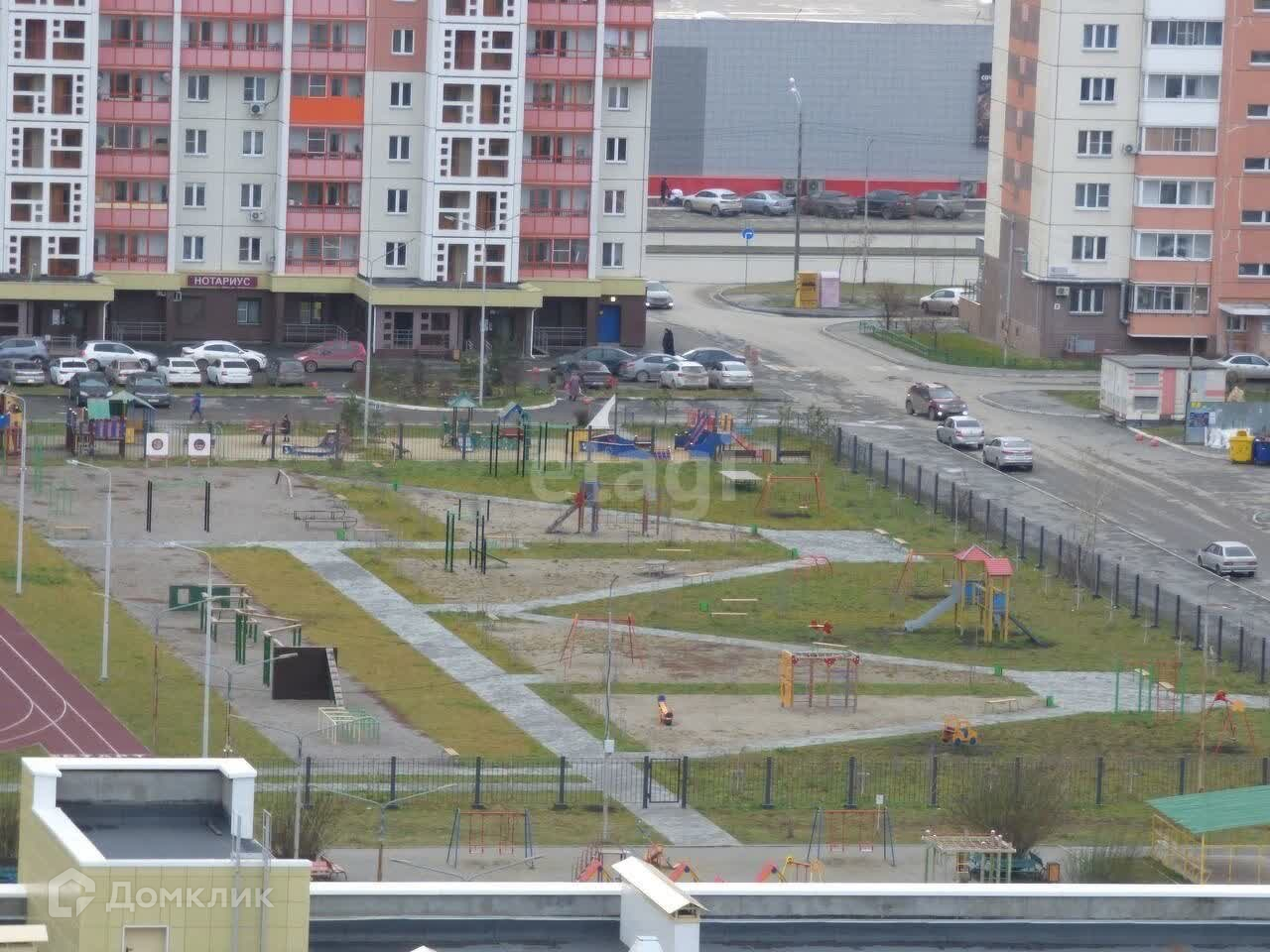 Экологически чистый район. Рядом с домом обустроена пешеходная аллея с лавочками, детскими и спортивными площадками. Во дворе – спортплощадки. Много парковочных мест во дворе.