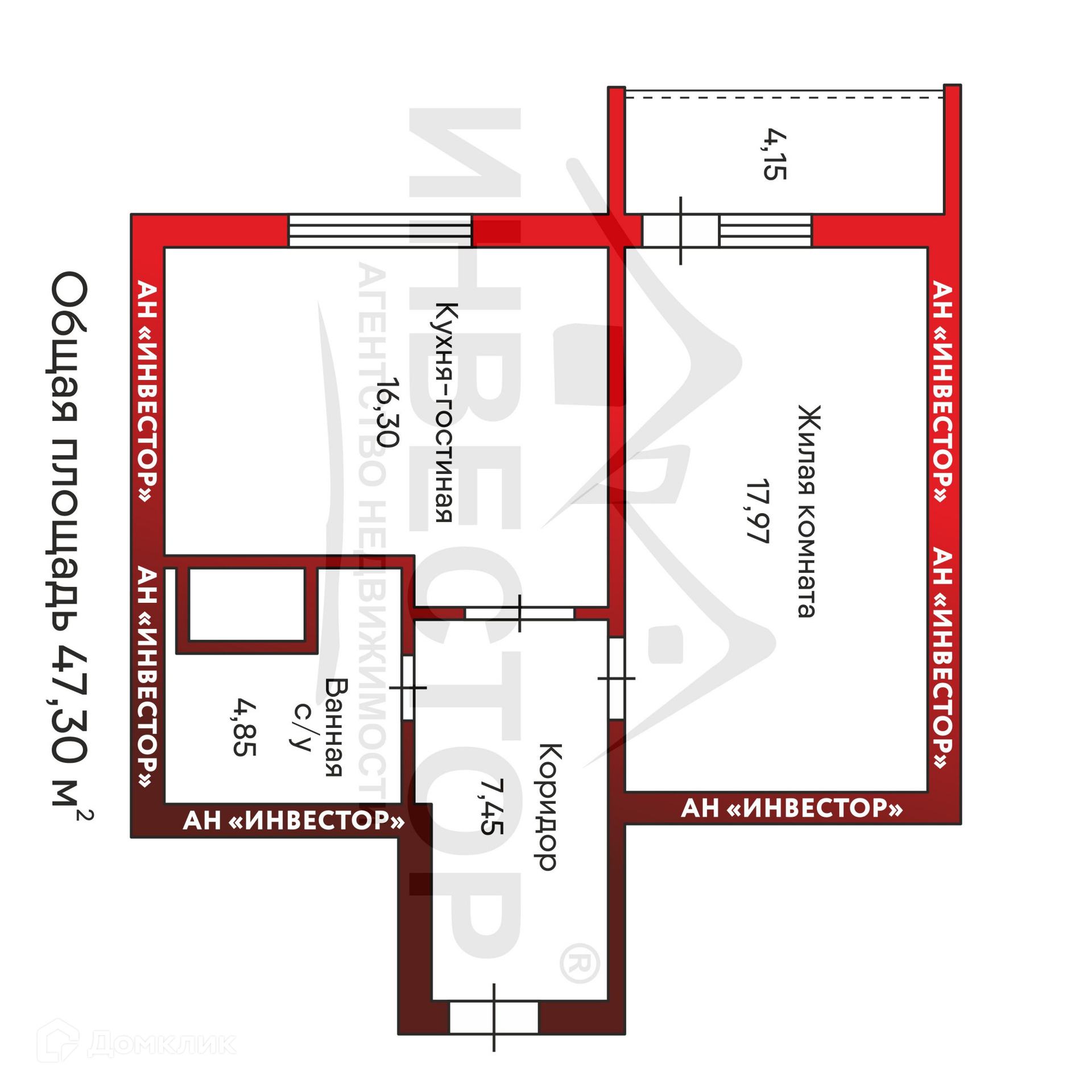 Общая площадь 47.3 м2