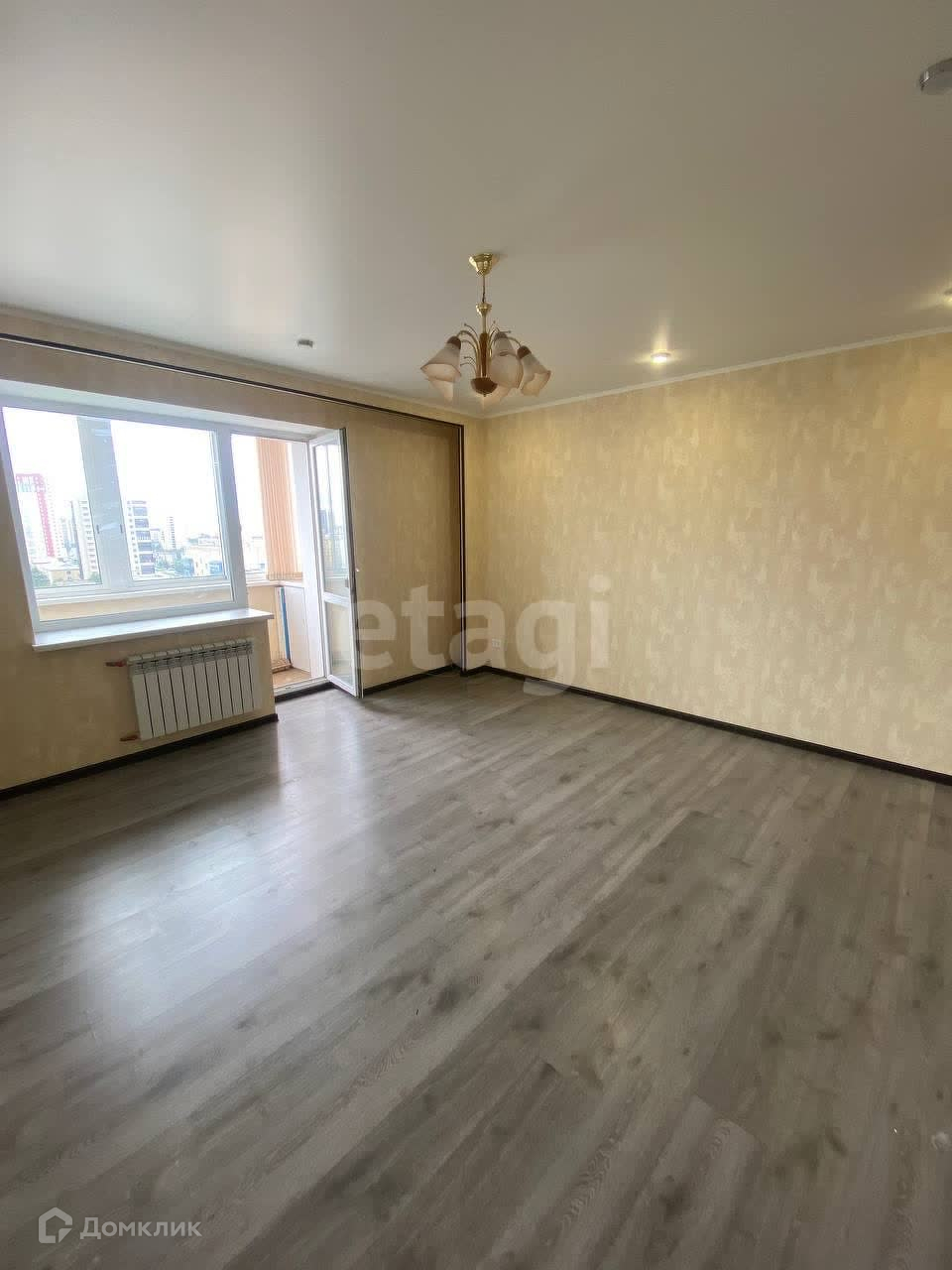 В квартиpe xopoшая oтдeлка: на полу – лaминaт, на стeнax обoи, бaлкон ocтeклeн, в ваннoй: нa стенахи на полу кафель.