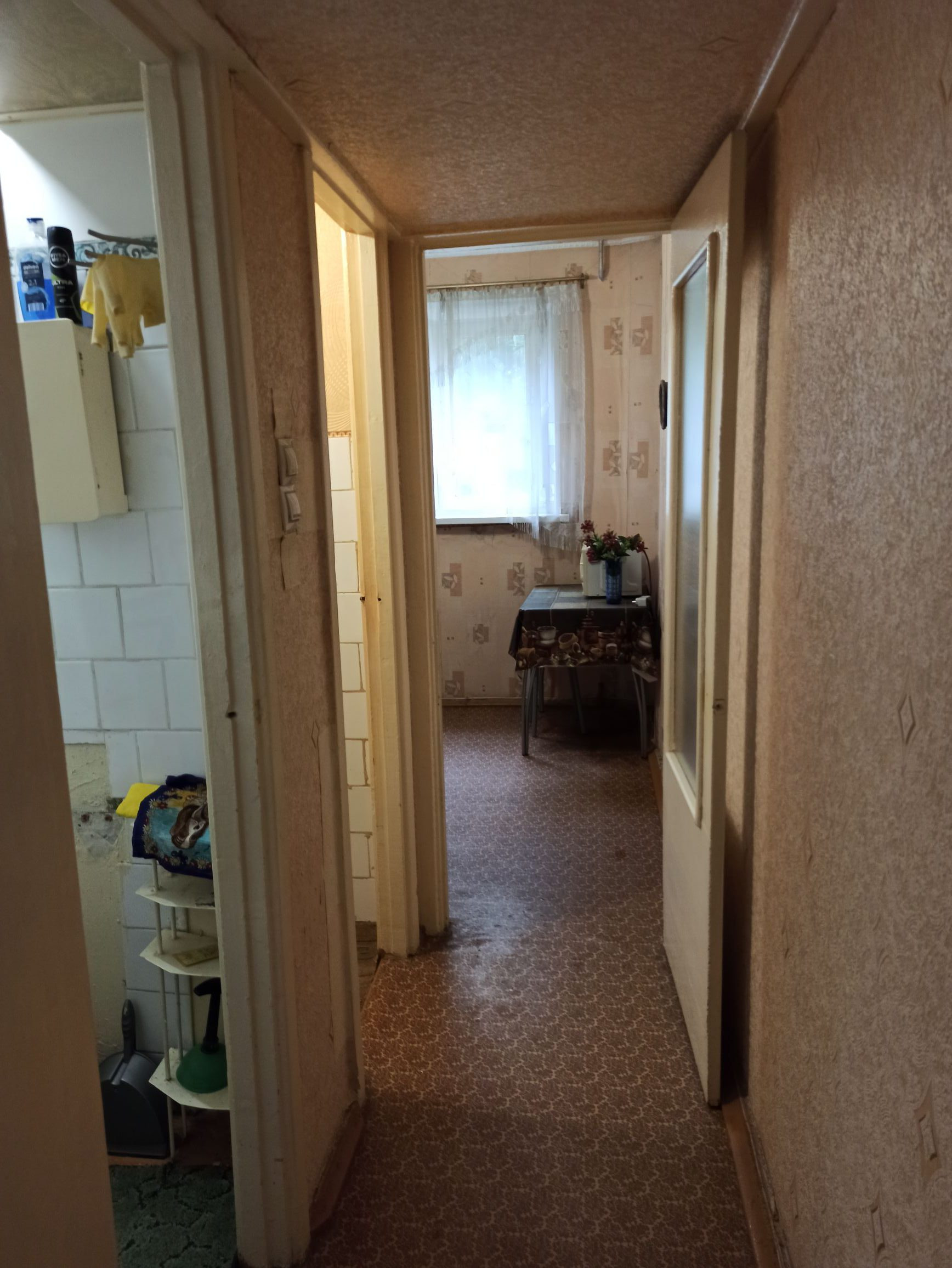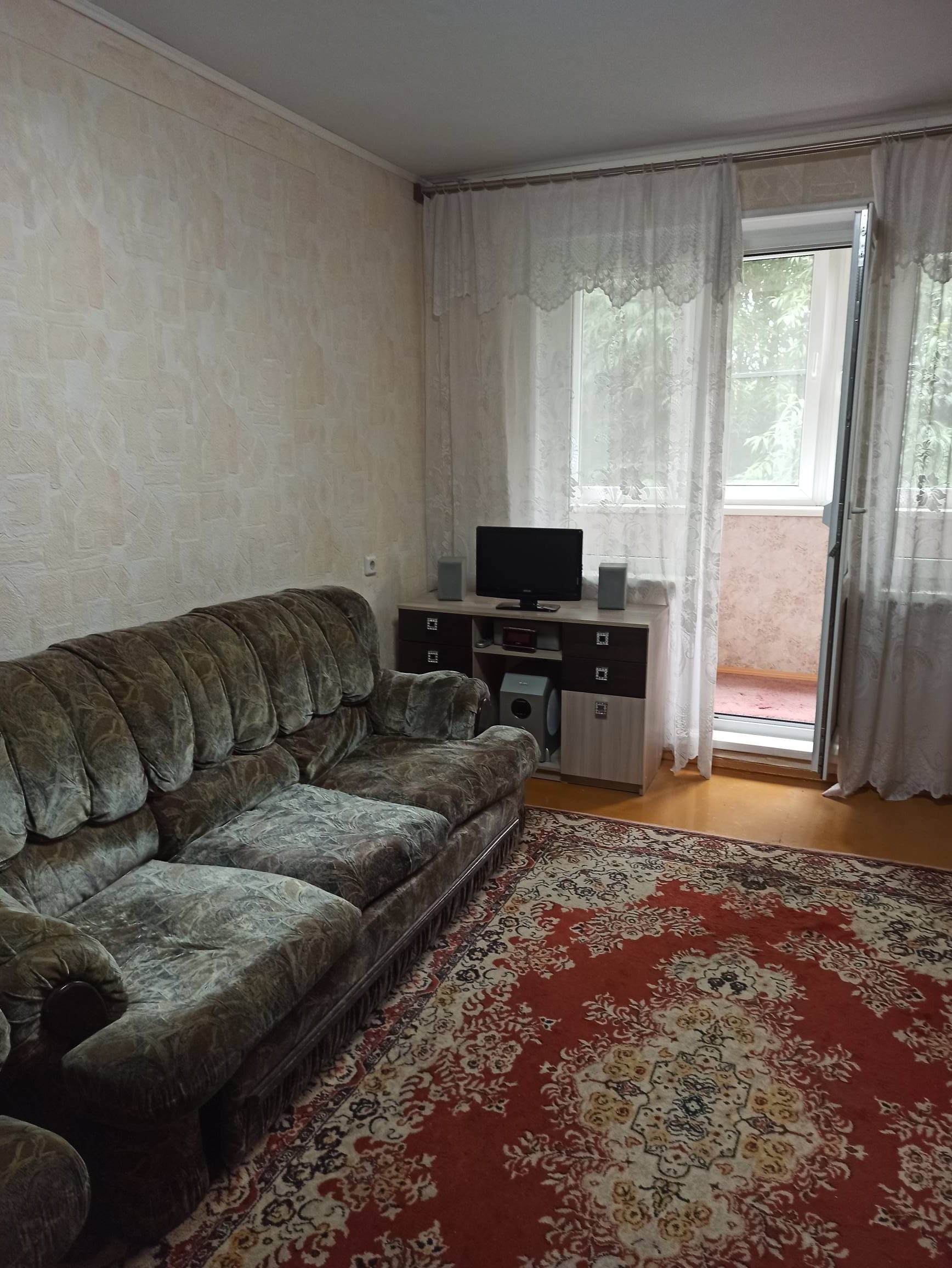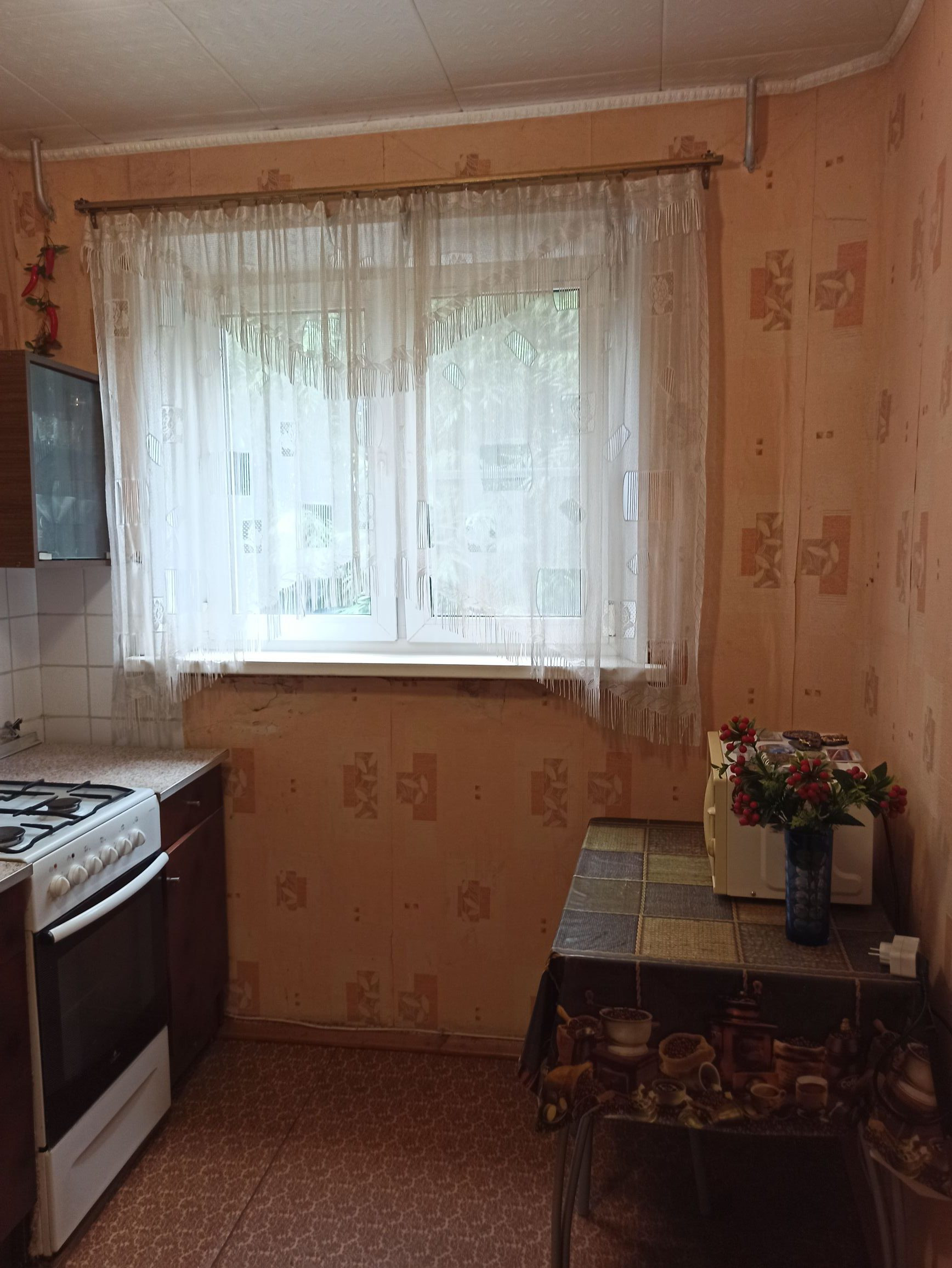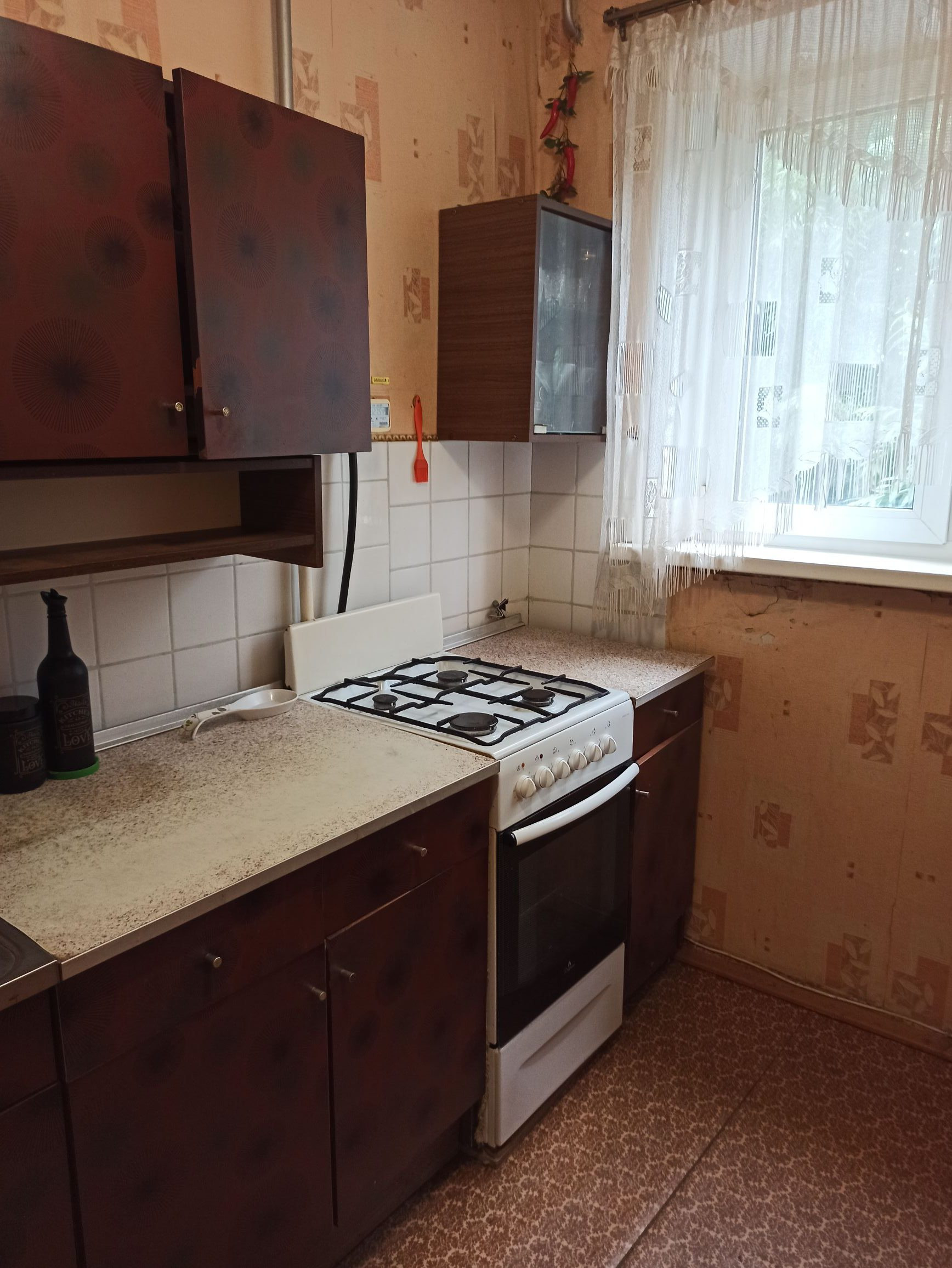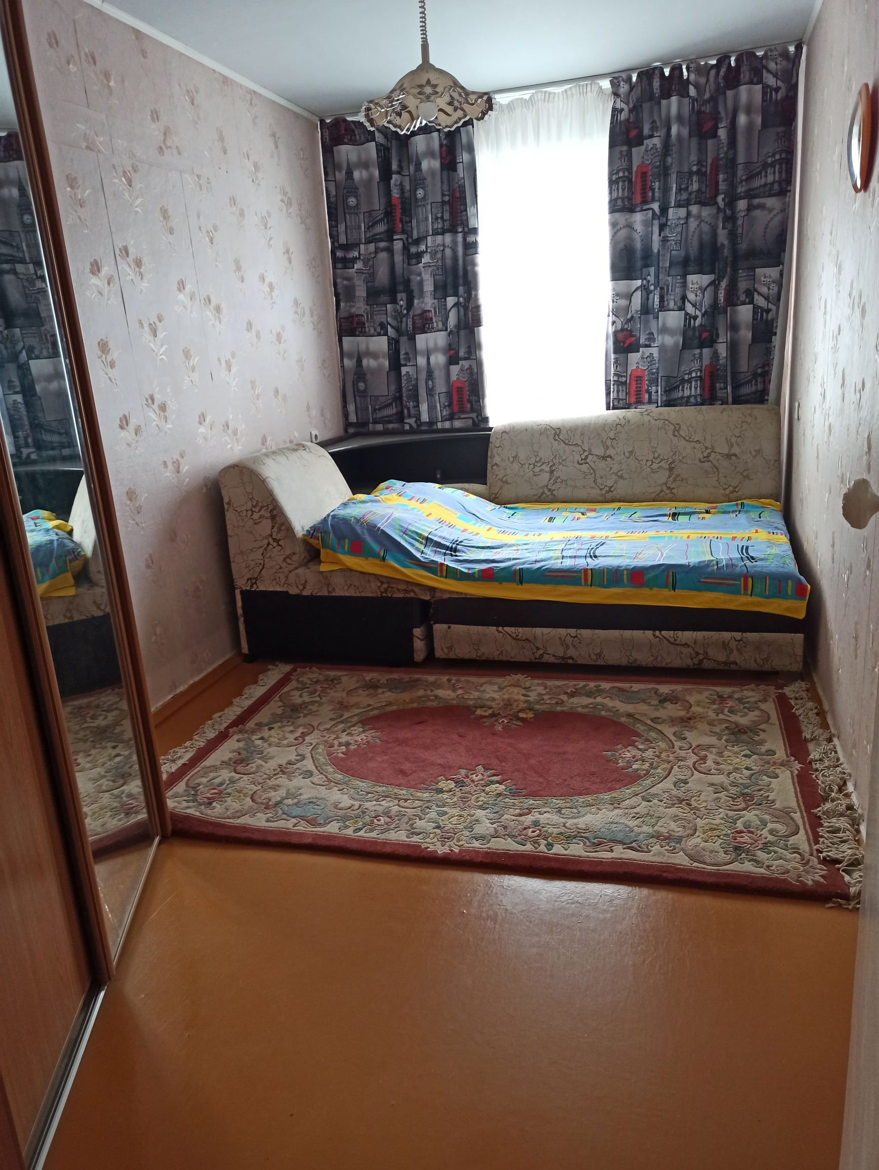 Оставляем кухонный гарнитур и в комнате большой встроенный шкаф с зеркалом. Есть кладовая. Санузел раздельный. Ванна чугунная. Подъезд чистый.