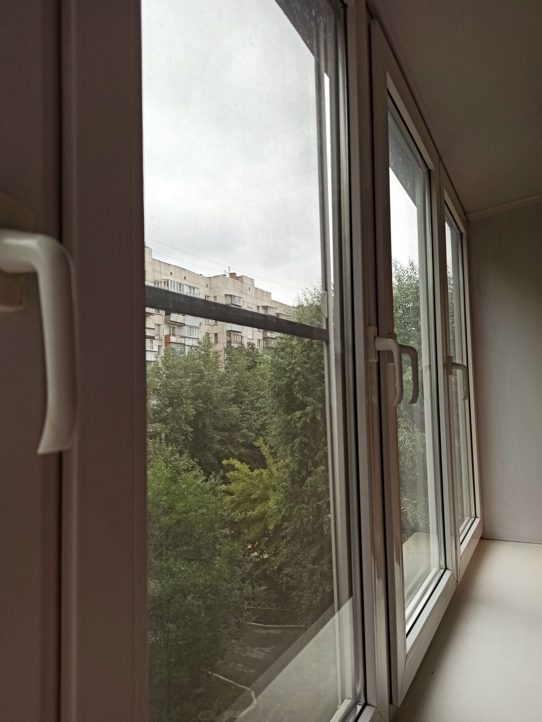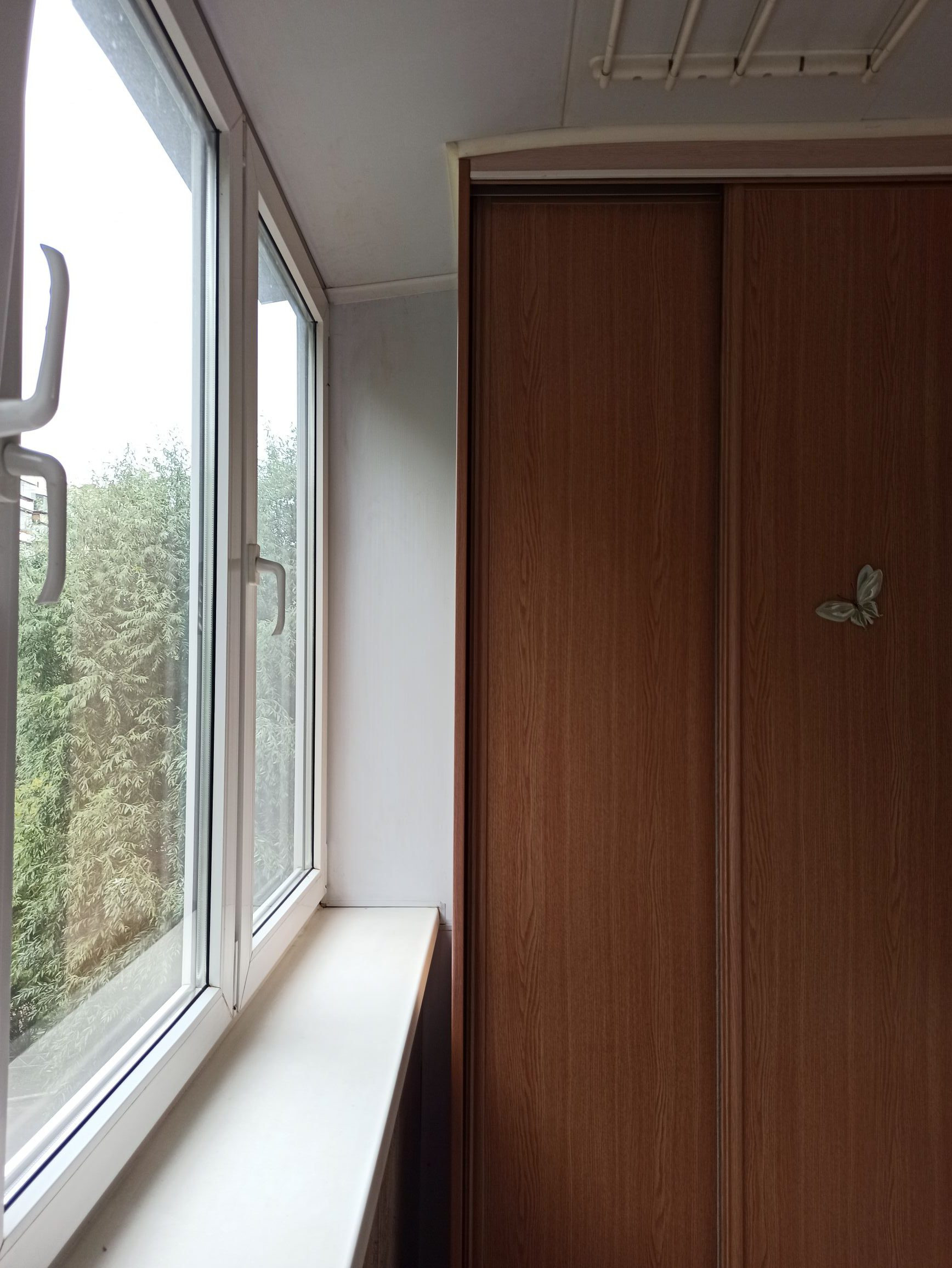 Окна пластиковые. лоджия с выносом, застеклена. все окна открываются, что очень удобно мыть раму. Окна выходят на восток и запад.