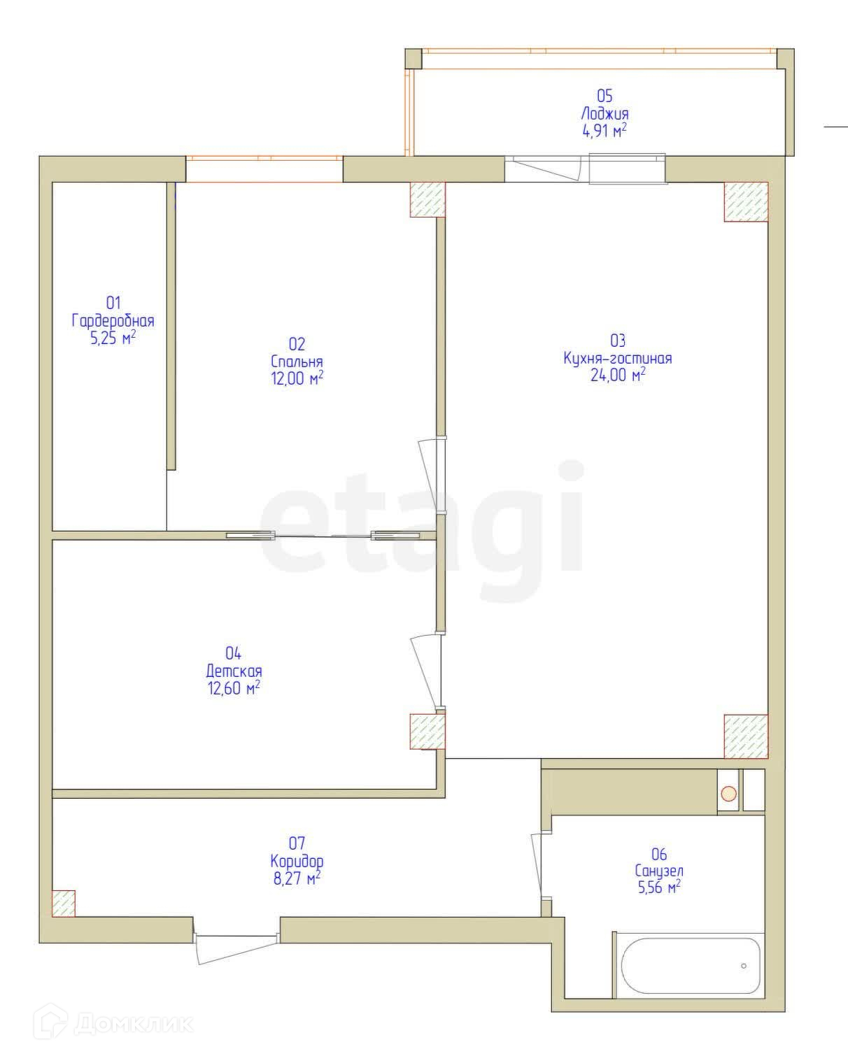 Продается студия+2спальни в предчистовой отделке, общей площадью 74м2