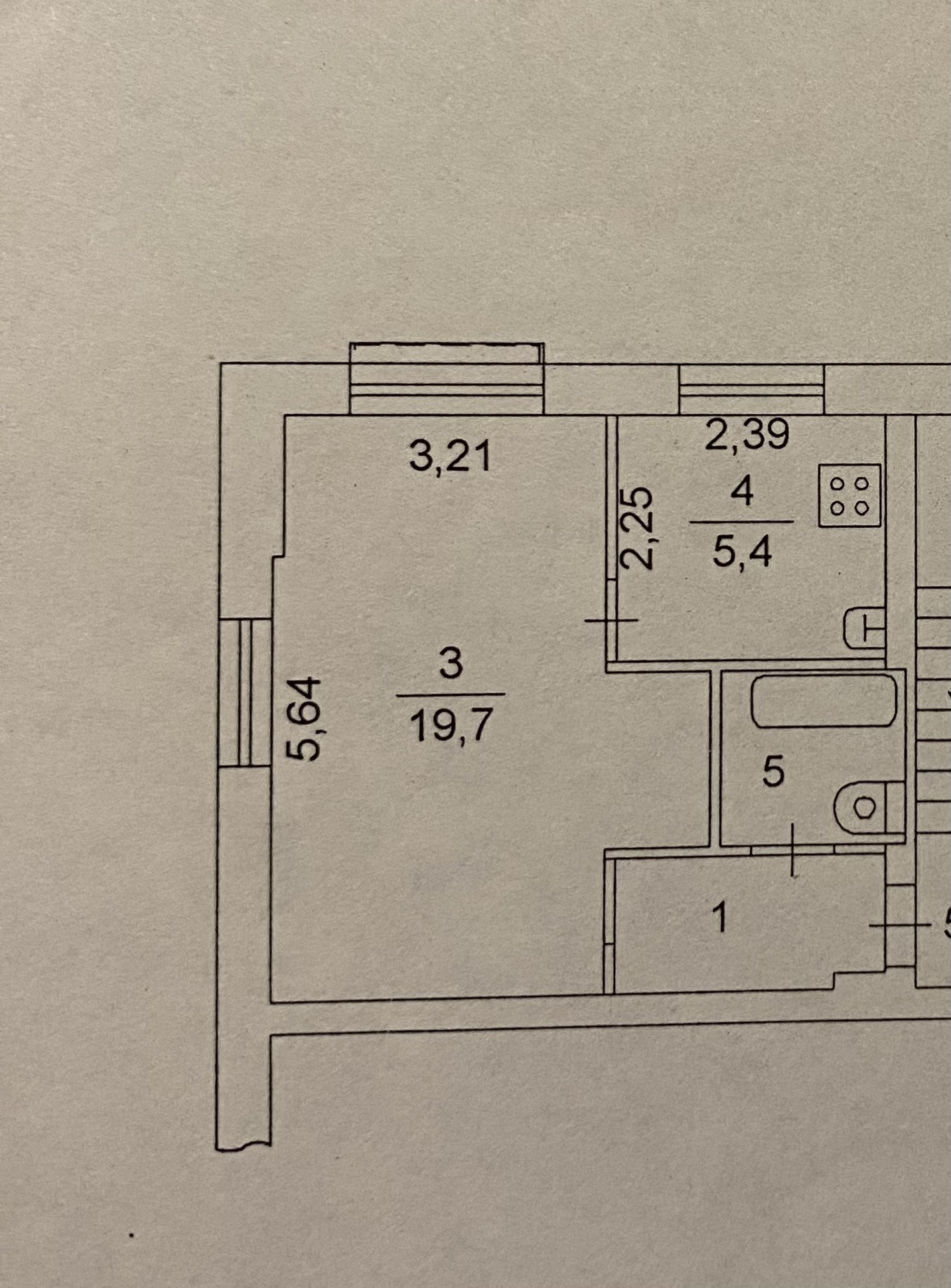 Площадь кухни 5.4 м2
