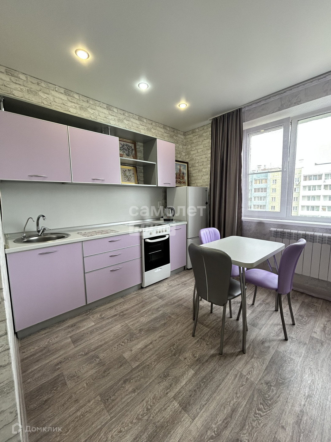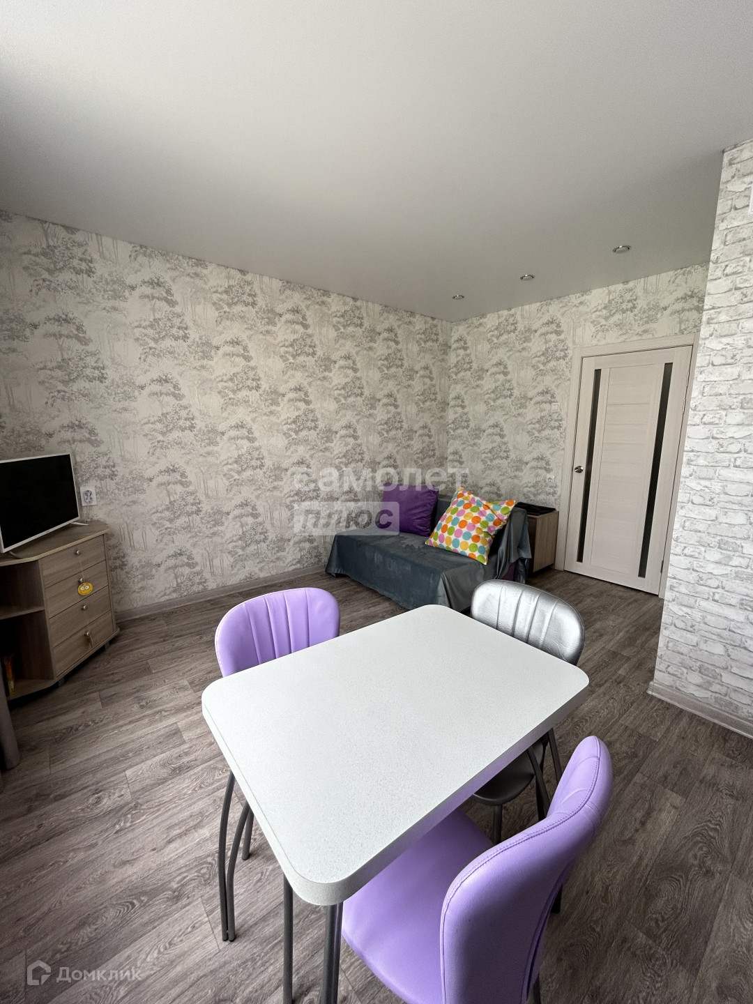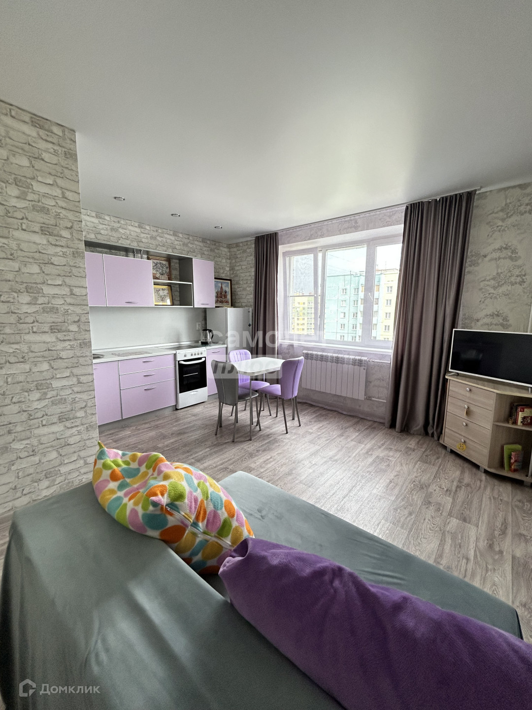 В квартире выполнен качественный свежий ремонт, натяжные потолки, светлый качественный линолеум. Новая батарея, так же в квартире установлены пластиковые окна. Окна выходят во двор на детскую площадку.