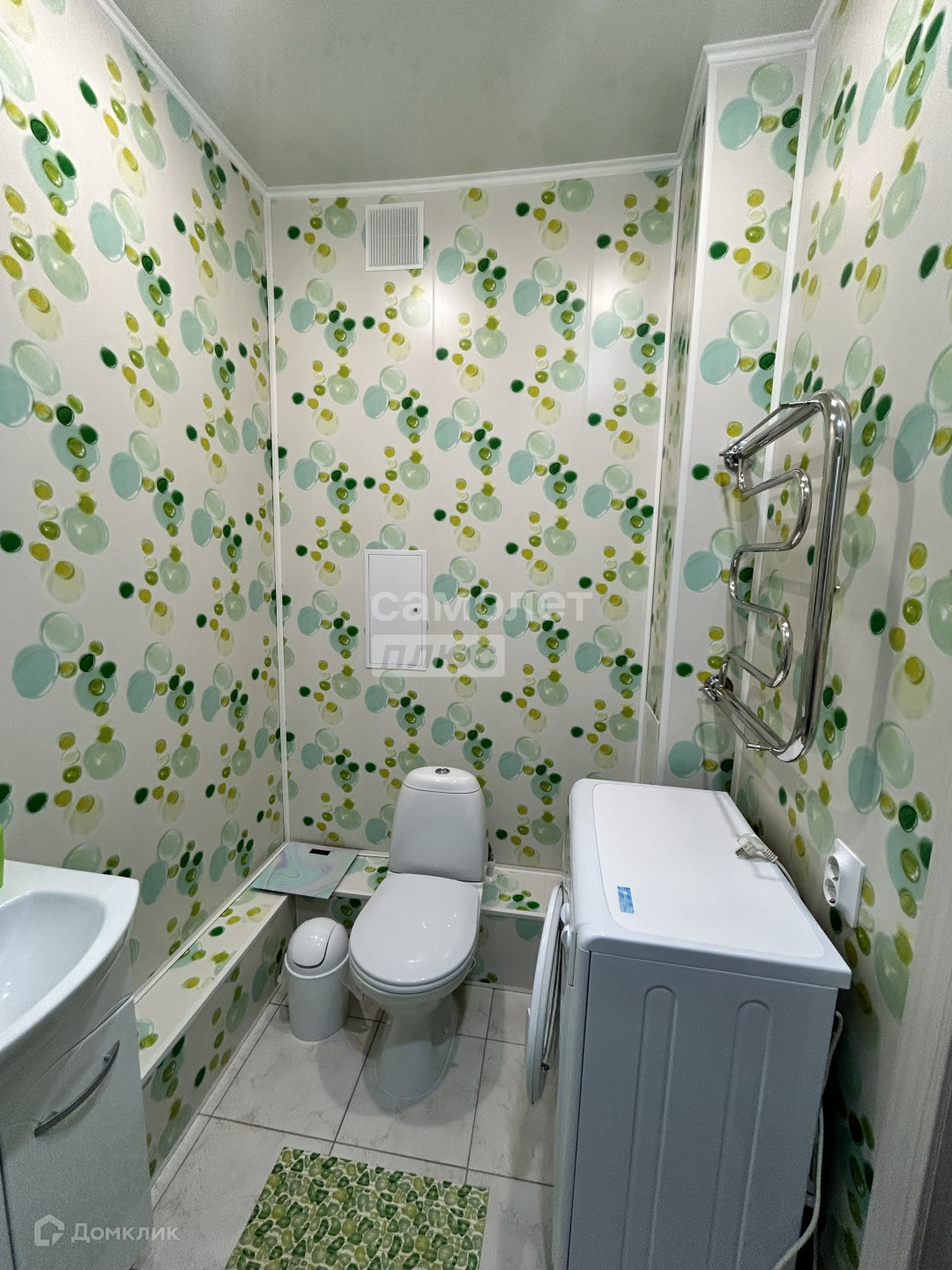 Санузел совмещен, уложен на полу кафель, стены обшиты панелями.