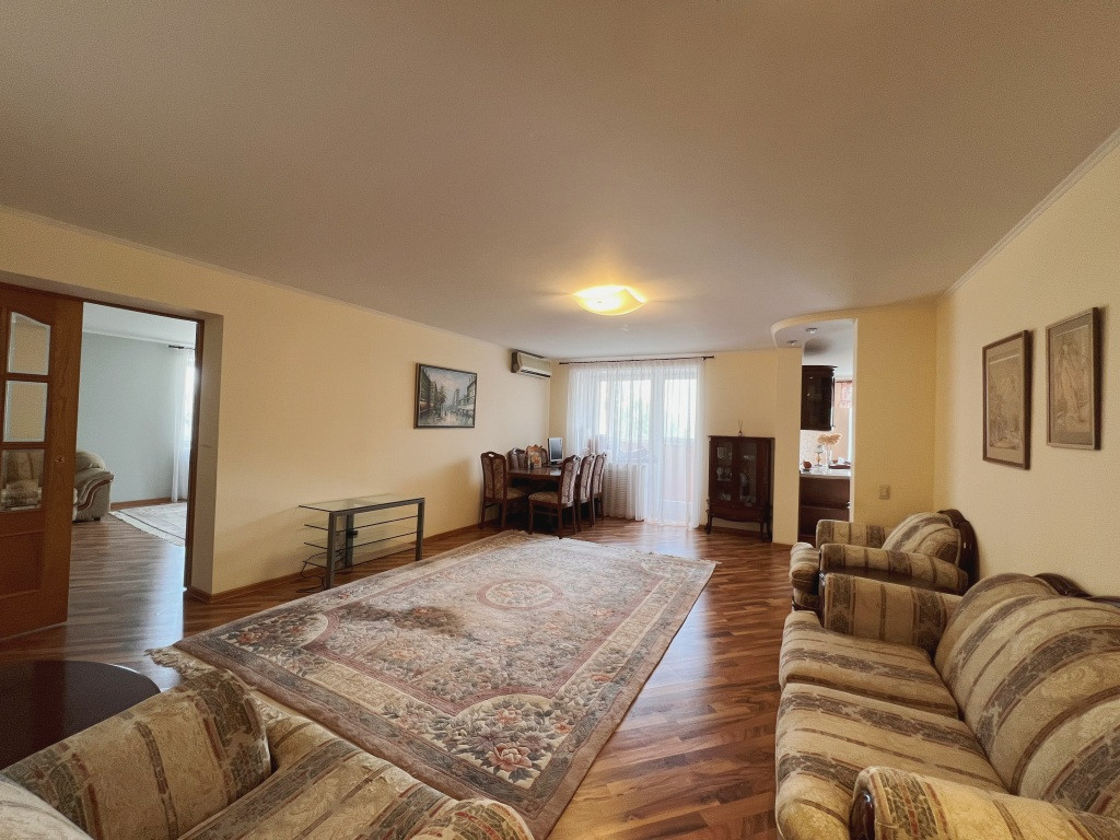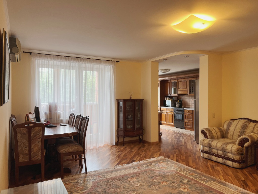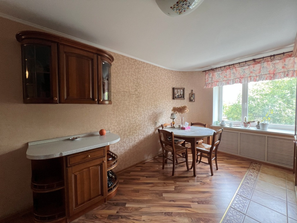 Внутри квартиры вас ждёт уют и комфорт благодаря ремонту, который был выполнен с использованием качественных экологических материалов. Жилая площадь составляет 94.3 квадратных метра, что позволяет разместиться большой семье или создать отдельные зоны для отдыха и работы. Кухня площадью 15 квадратных метров станет отличным местом для приготовления вкусных блюд и семейных ужинов. Также в квартире имеются две лоджии, откуда открывается вид на двор и город.