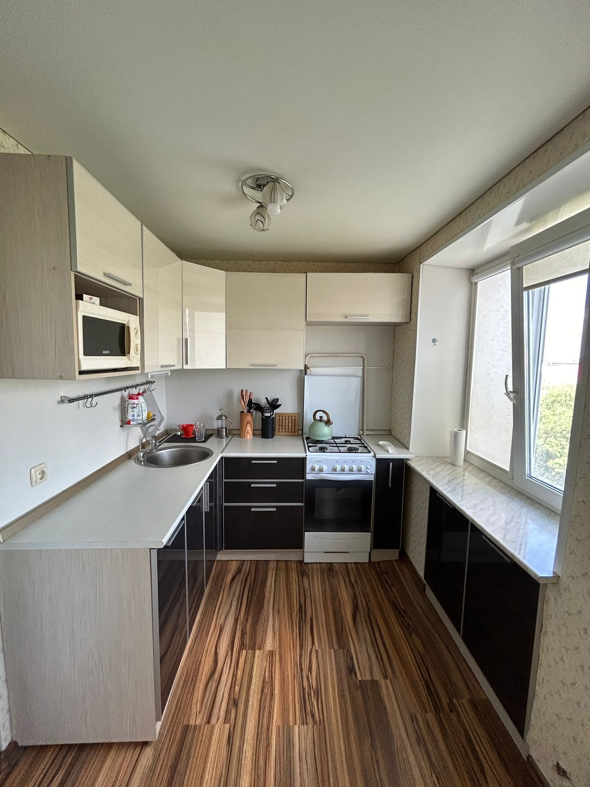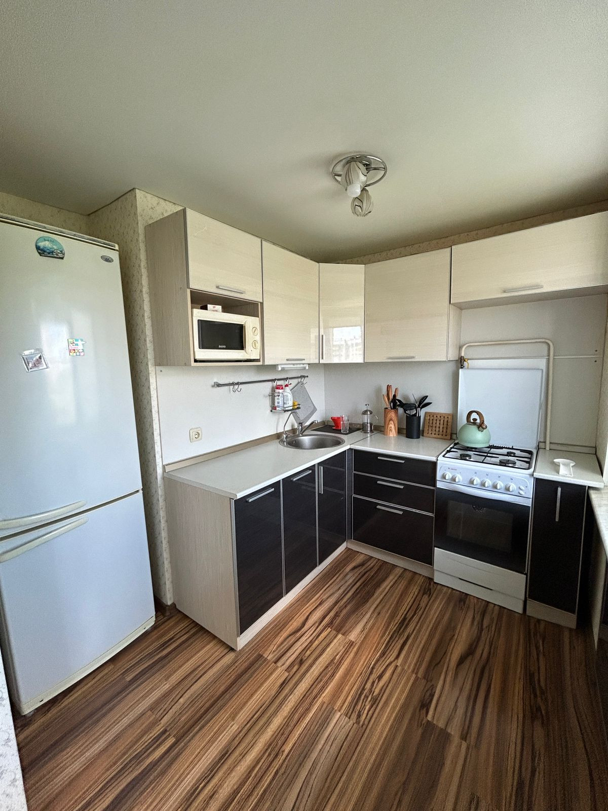 Жилая площадь составляет 45 квадратных метров, а кухня занимает 6 квадратных метров. Это идеальное пространство для семейного времяпрепровождения и приготовления пищи. В квартире выполнен косметический ремонт, благодаря чему она выглядит свежо и аккуратно.