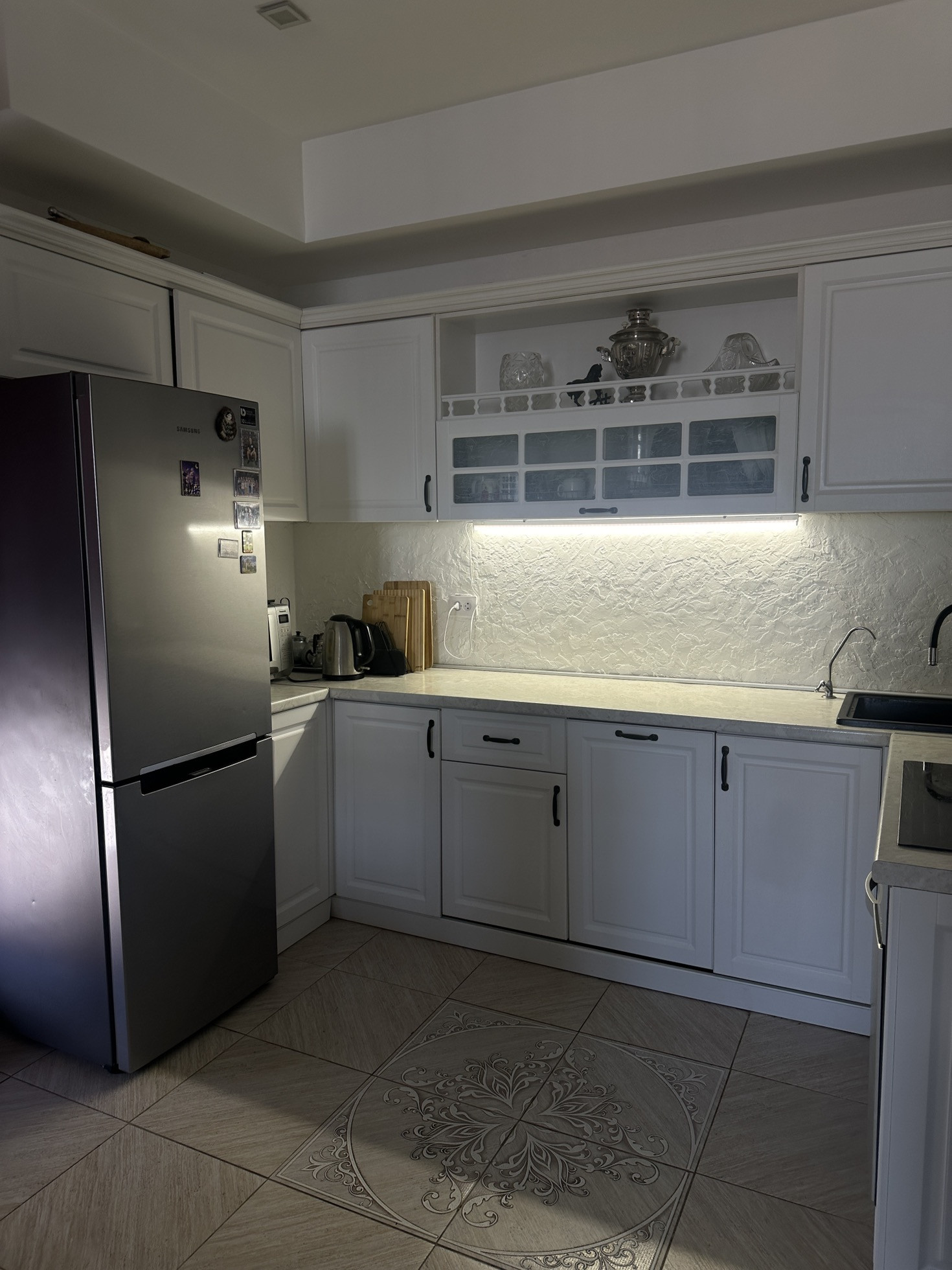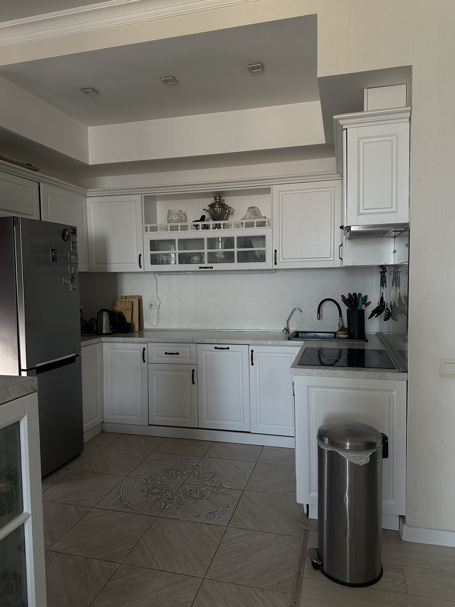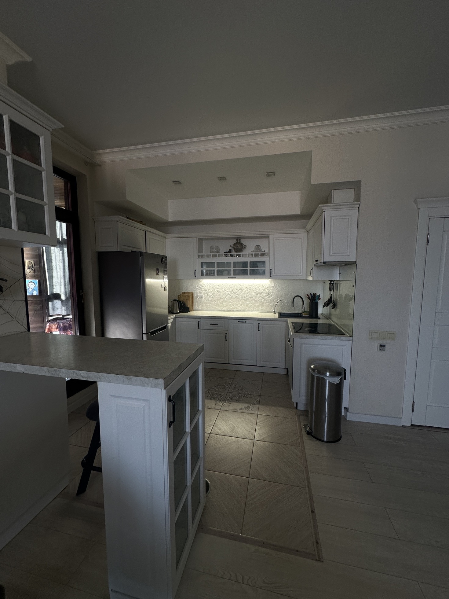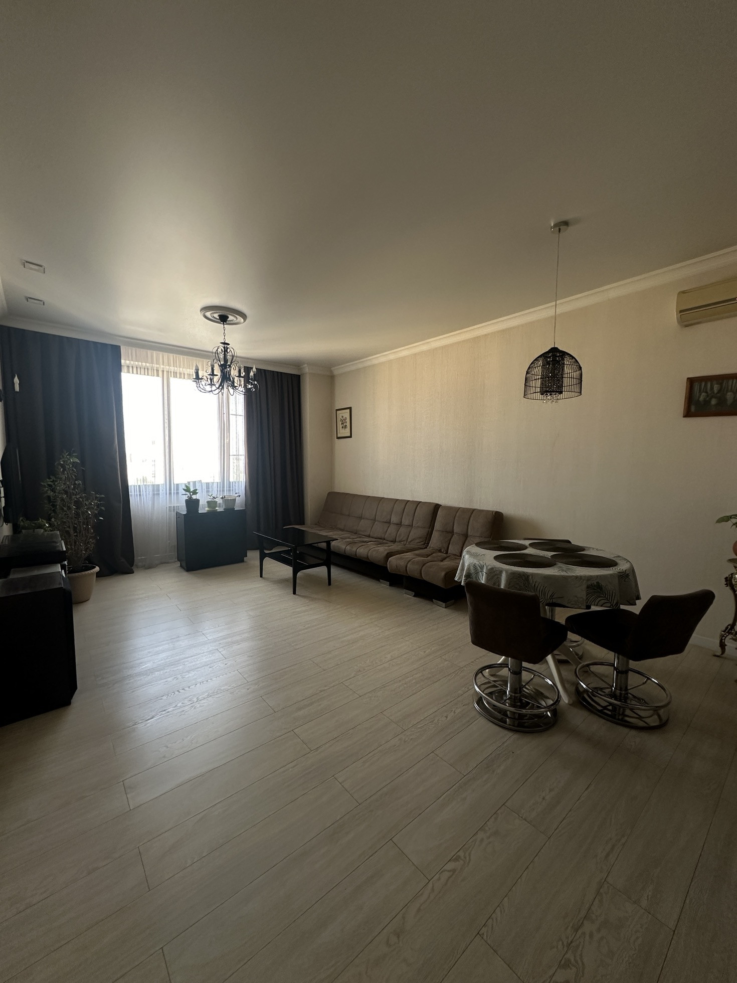 -Кухня-гостиная 36,4 м2 ( остается кухонный гарнитур , барная стойка со всей техникой : - духовой шкаф gorenje, варочная поверхность Electrolux, вытяжка krona, посудомоечная машина Electrolux, холодильник Samsung; установлена система очистки воды гейзер , кондиционер ballu )