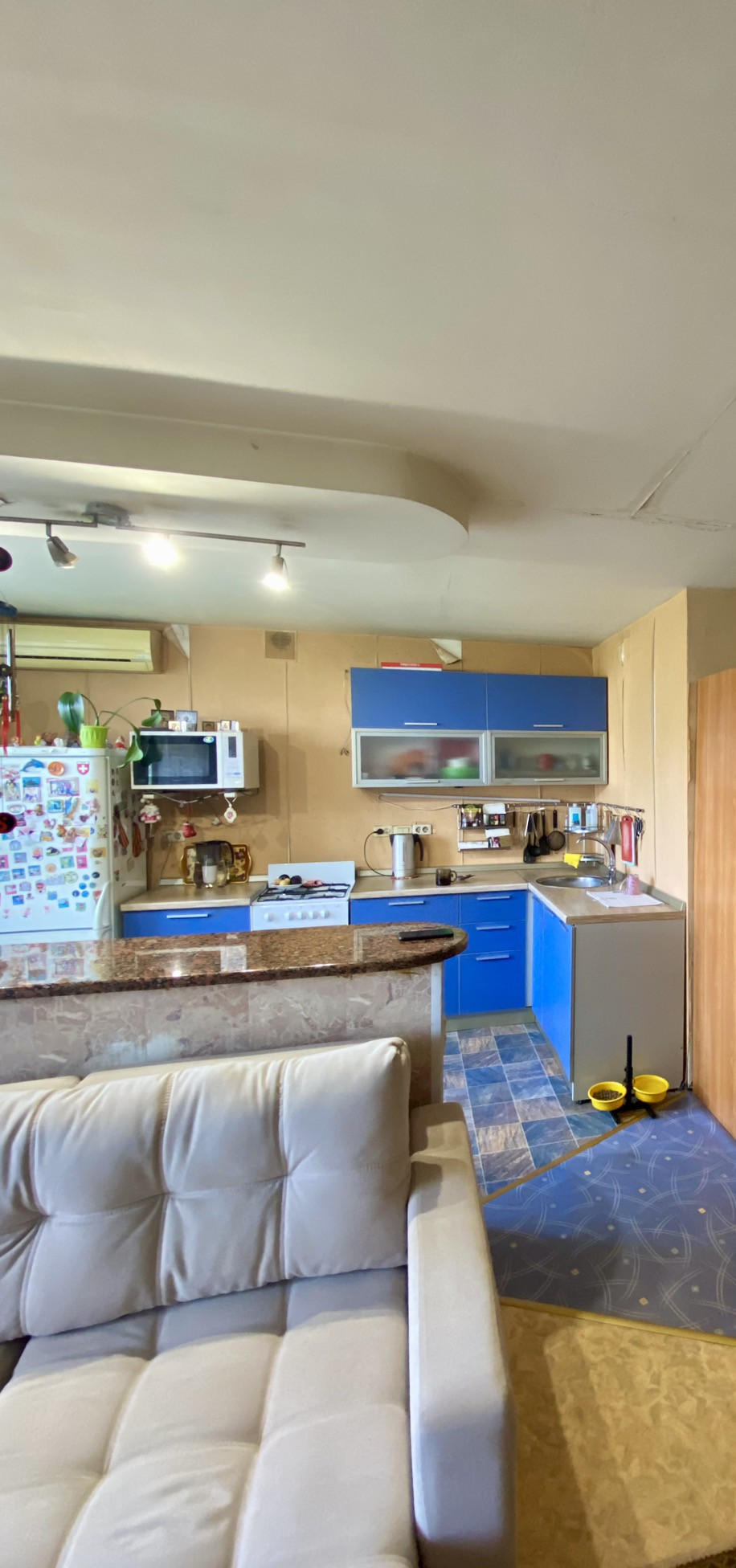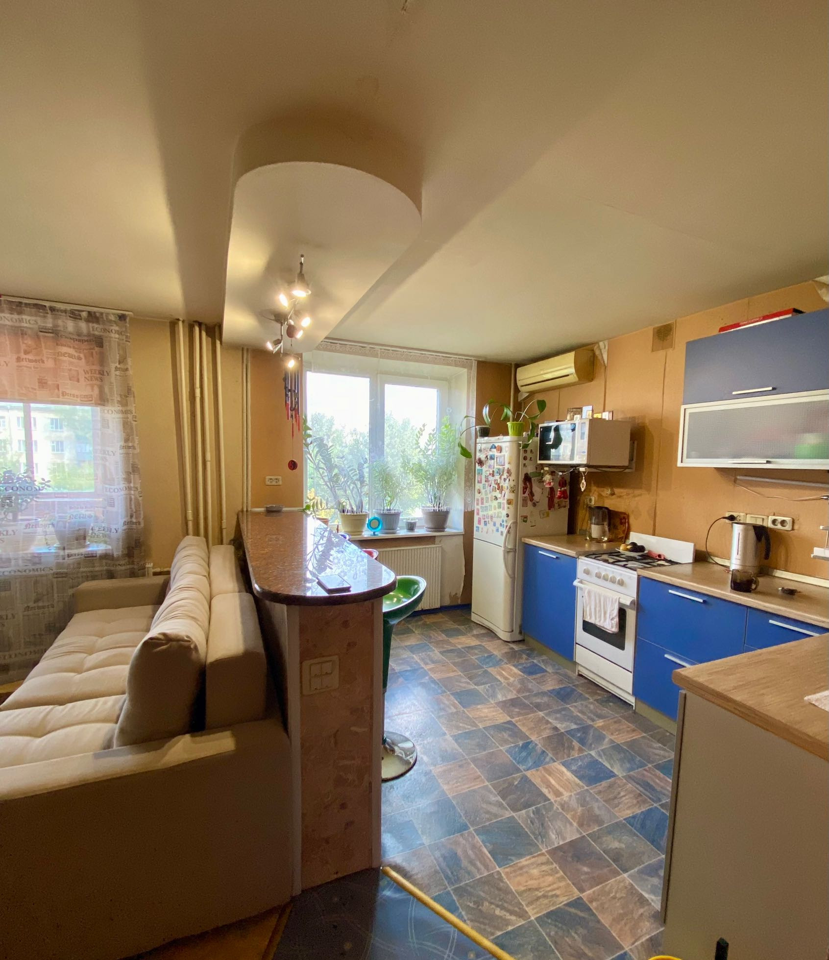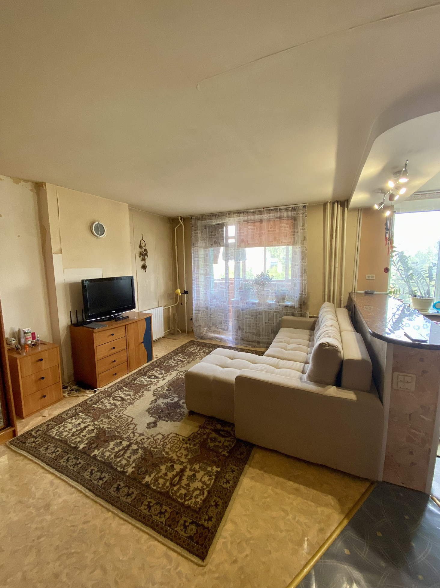 Коммуникации в квартире подключены, включая газ. Санузел совмещённый, что позволяет более рационально использовать пространство.
