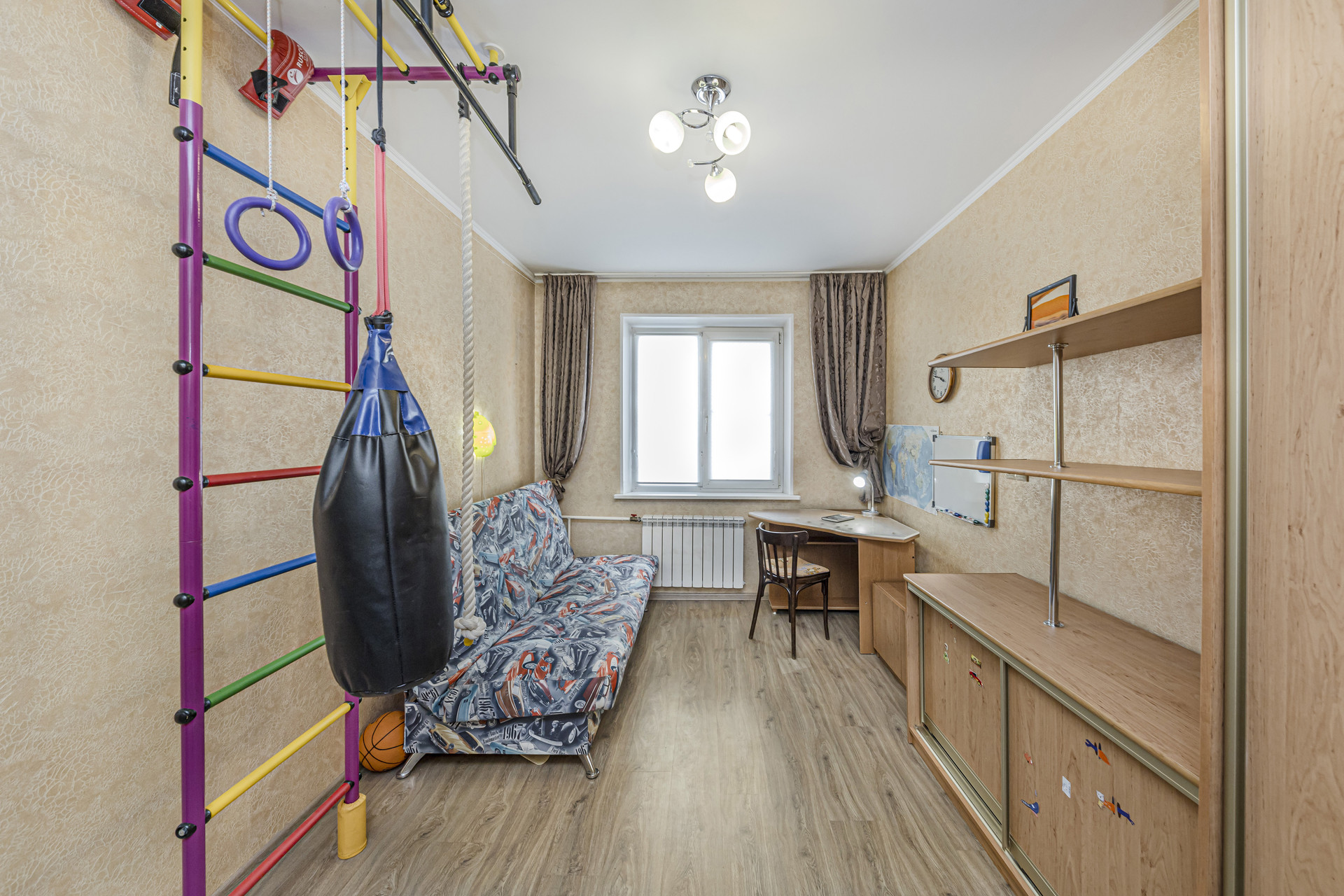 Расположение выгодное с развитой инфраструктурой: во дворе находятся детская и спортивная площадки, а также парковка для вашего автомобиля.