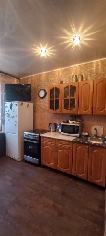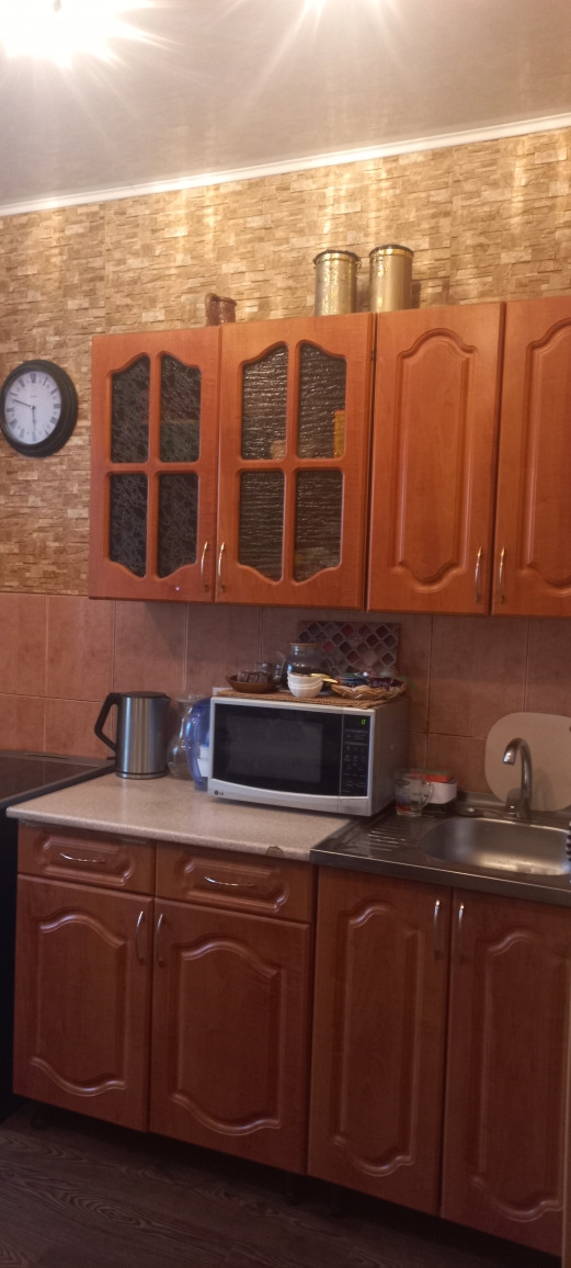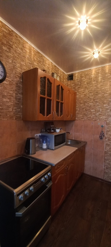 Квартира обладает жилой площадью 19 квадратных метров и кухней площадью 9 квадратных метров с кладовкой, которую можно использовать как гардеробную. Внутри выполнен косметический ремонт, что позволит новым владельцам сразу заселиться без дополнительных вложений. Санузел раздельный, что добавляет комфорта при использовании, отделан кафелем, на кухне, в коридоре, где с/у и зале натяжной потолок, на полу по всей квартире линолеум. Балкон застеклен и отделан деревом Место тихое и спокойное.