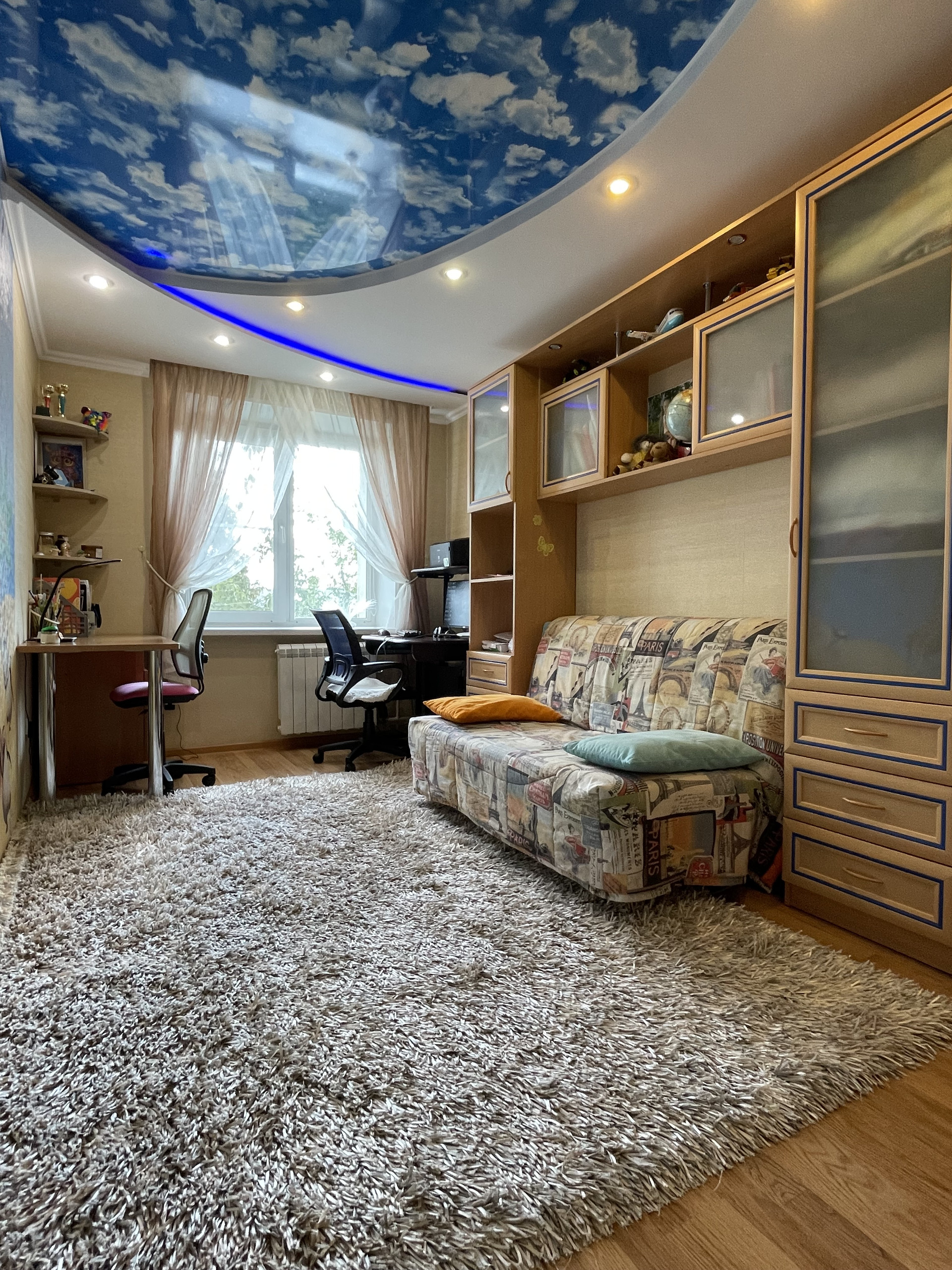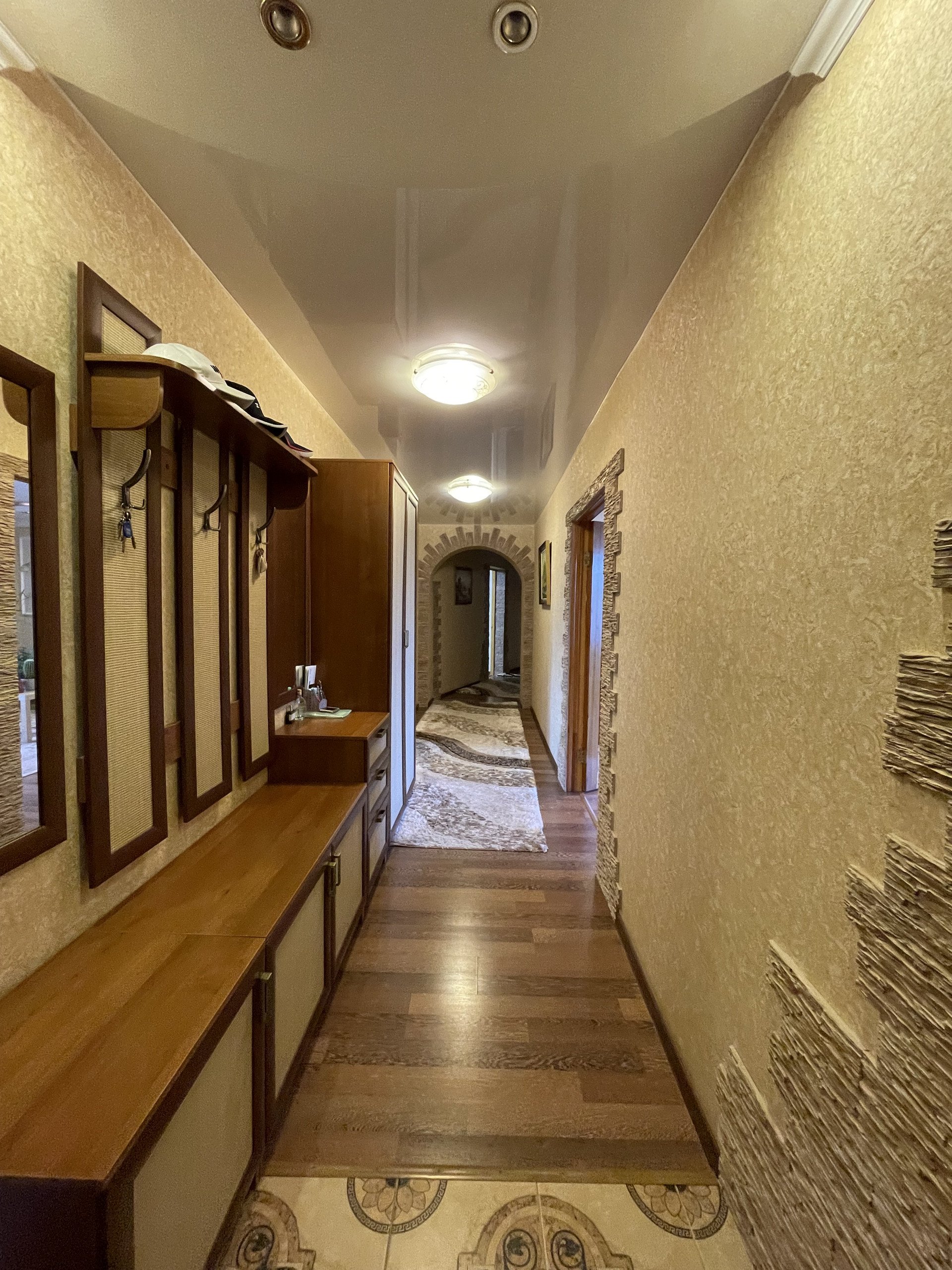 Можно заезжать и жить без каких-либо капитальных вложений. В свое время делался добротный ремонт из качественных материалов, по дизайн-проекту. Делали все для себя и с любовью! В санузлах кафель от пола до потолка, на полу кераммогранит/ламинат, натяжные потолки, добротная сантехника, качественные межкомнатные двери, вся проводка и коммуникации заменены. Ваше внимание несомненно обратит на себя дизайнерская фреска на кухне! В квартире по-договоренности можем оставить практически всю мебель, кухонный гарнитур, бытовую технику, предметы декора и текстиль.