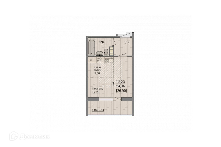 Общая площадь 26.9 м2