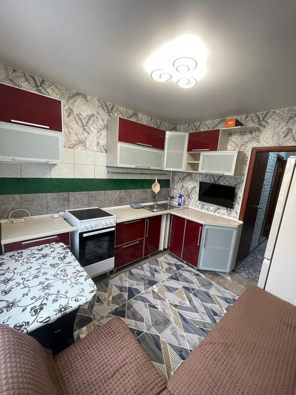 с/у кaфель, установл,счетчики на воду , кухонный гарнитур,балкон застеклен.Всё что есть в квартире остается новым жильцам.